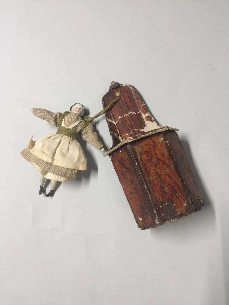 Houten poppetje horend bij popenwagentje met bijbeho...