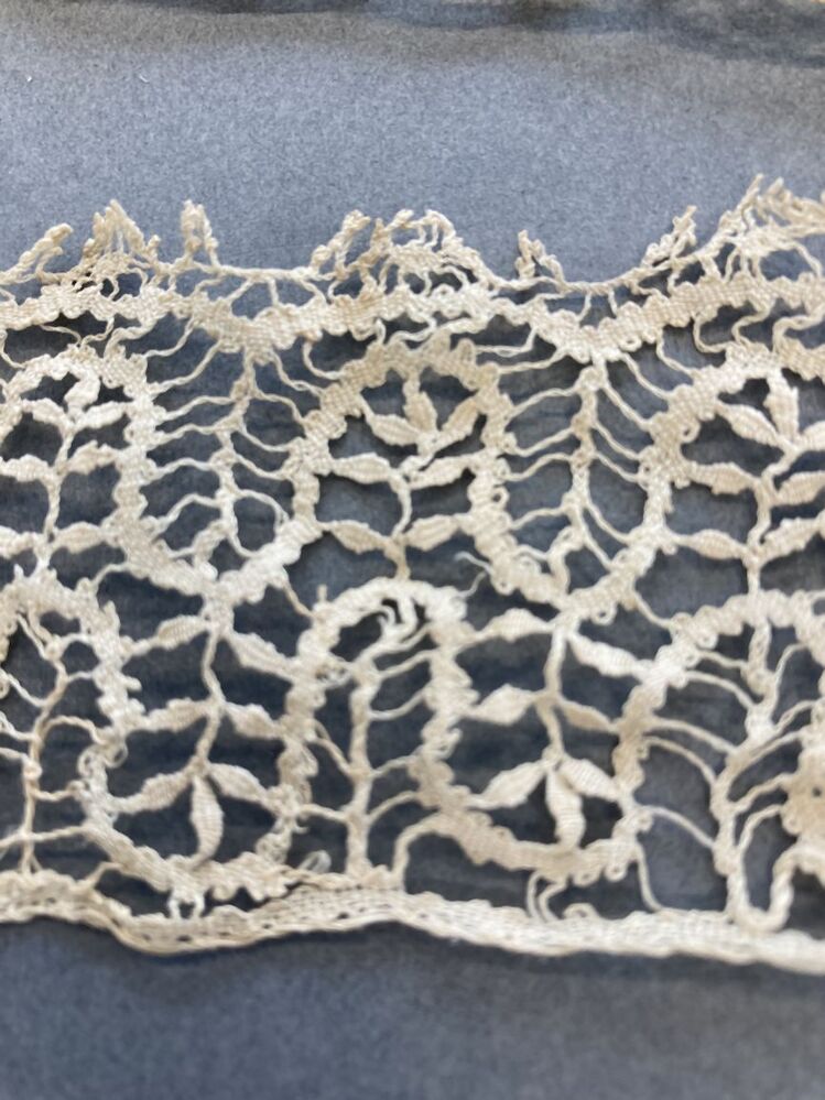 Slappe floddermuts van Mechelse kloskant met a-symme...