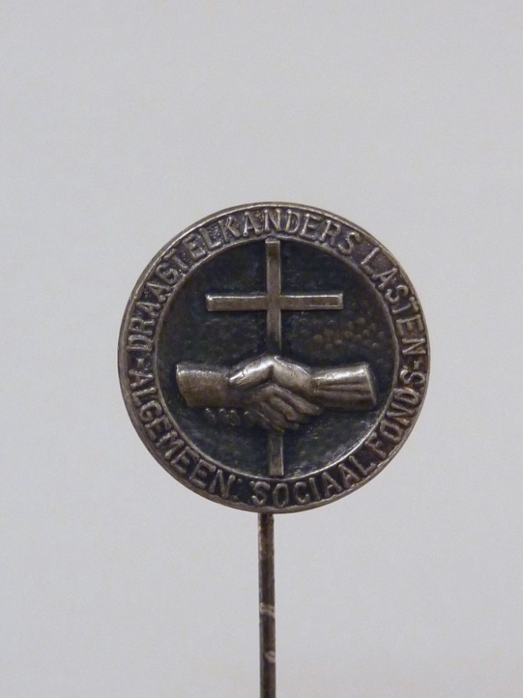Speld met kruis en twee handen, met "Draagt elkander...