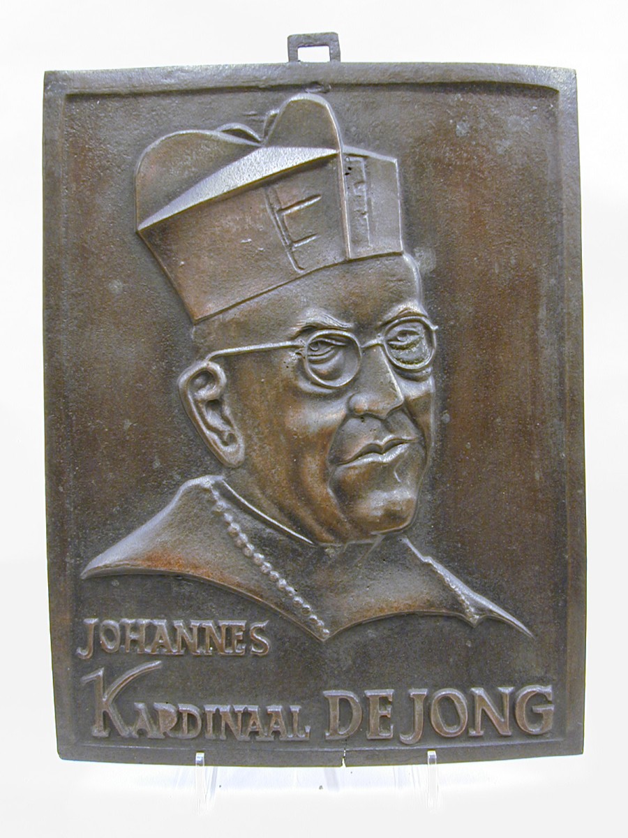 Plaquette met St. Bonifatius staande op eik van Frit...