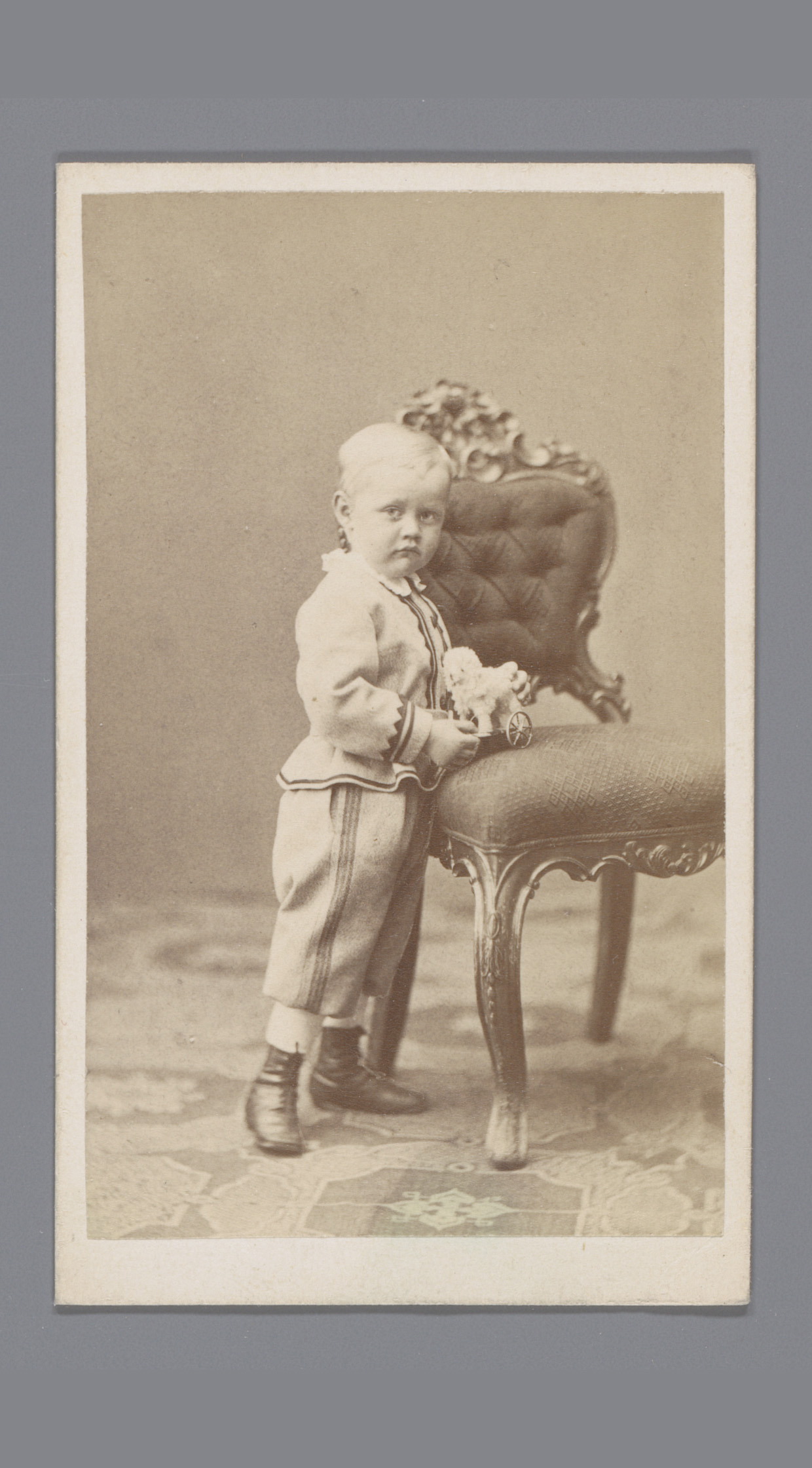 Portret van een jongen, aangeduid als Alexander, zit...