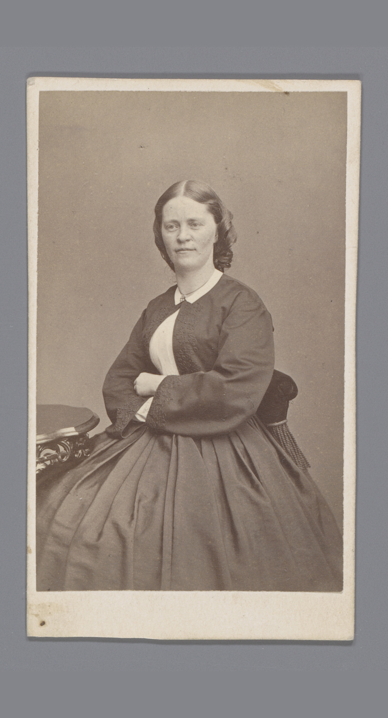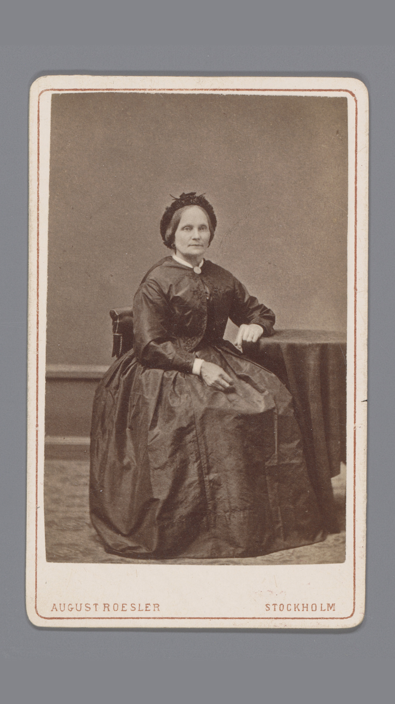 Portret van een onbekende vrouw, zittend aan een tafel