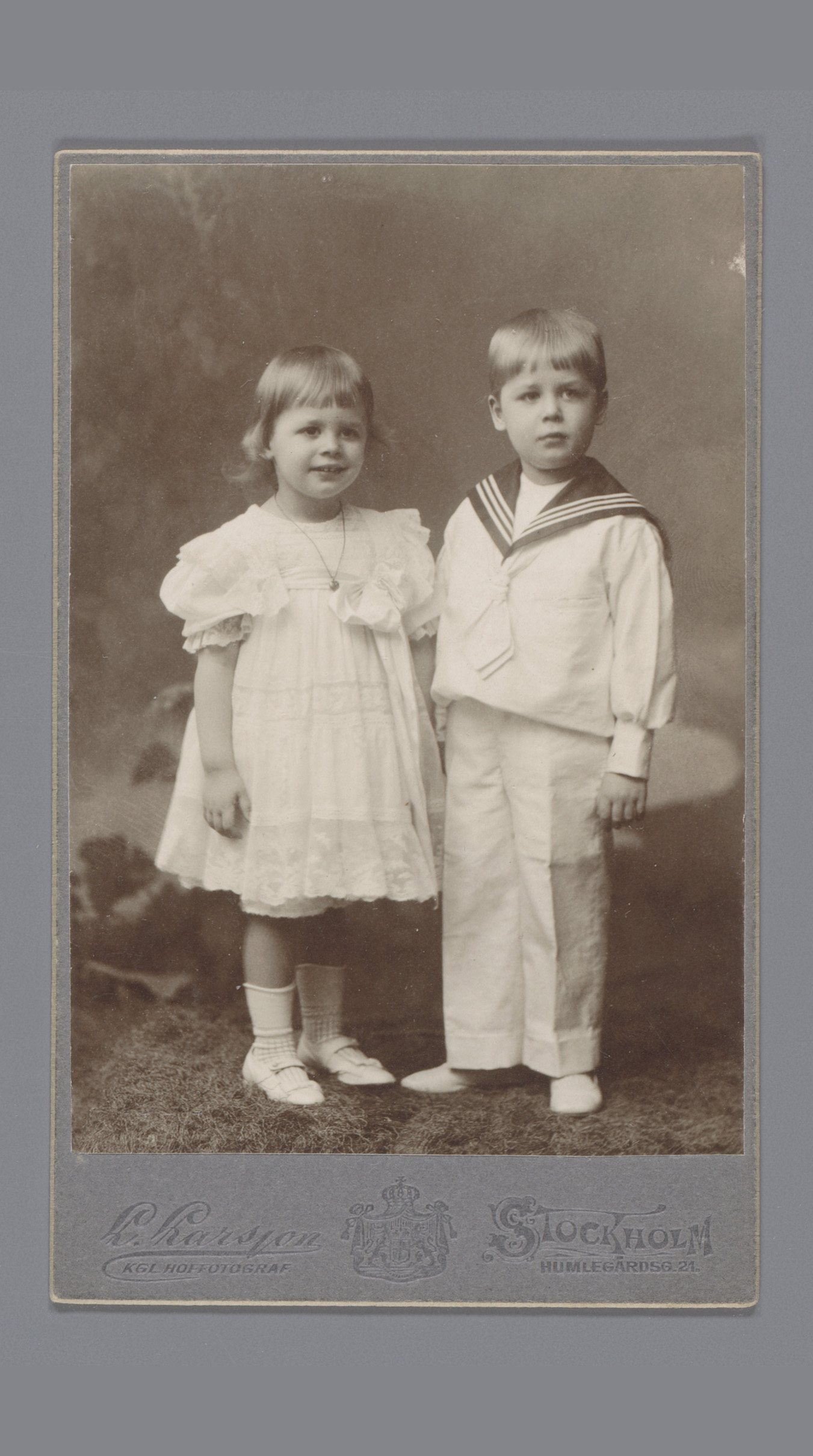 Portret van twee onbekende kinderen verkleed in een ...