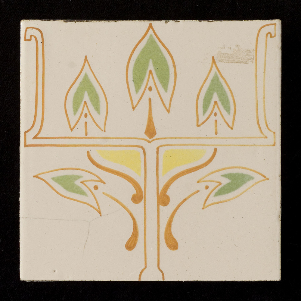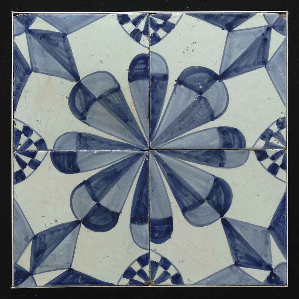 Tegelveld van keramiek met tinglazuur, voorstellende...