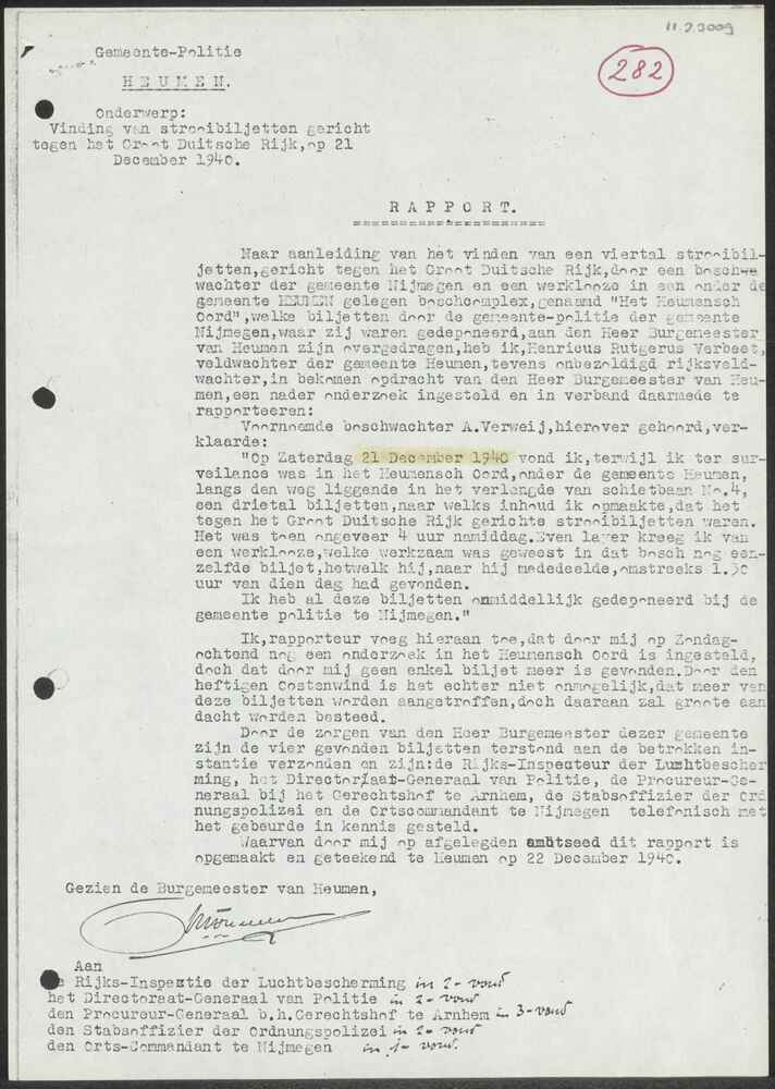 Proces-verbaal Hoofd Luchtbescherming Harenkarspel a...