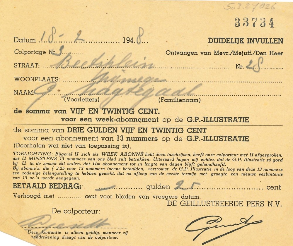 bewijs van betaling voor een abonnement op de Geïllu...