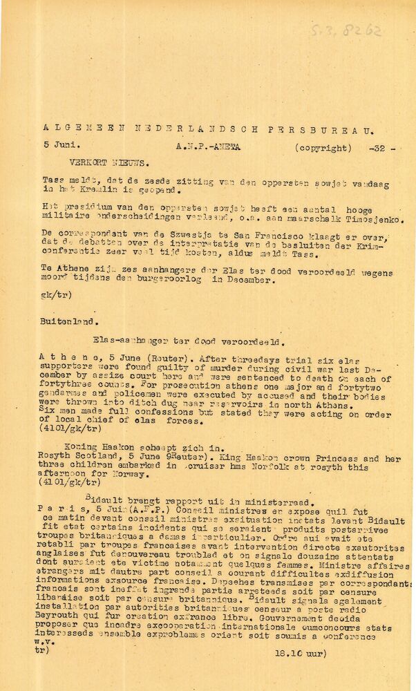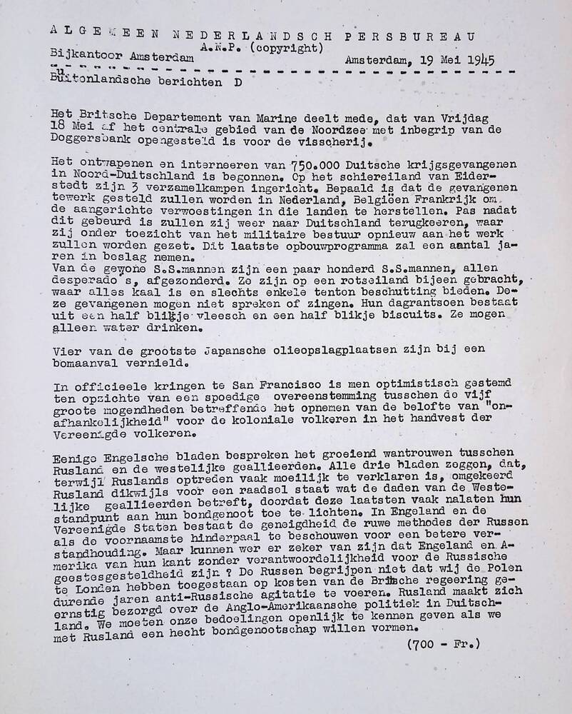 Algemeen Nederlandsch Persbureau, mededelingen, bijk...