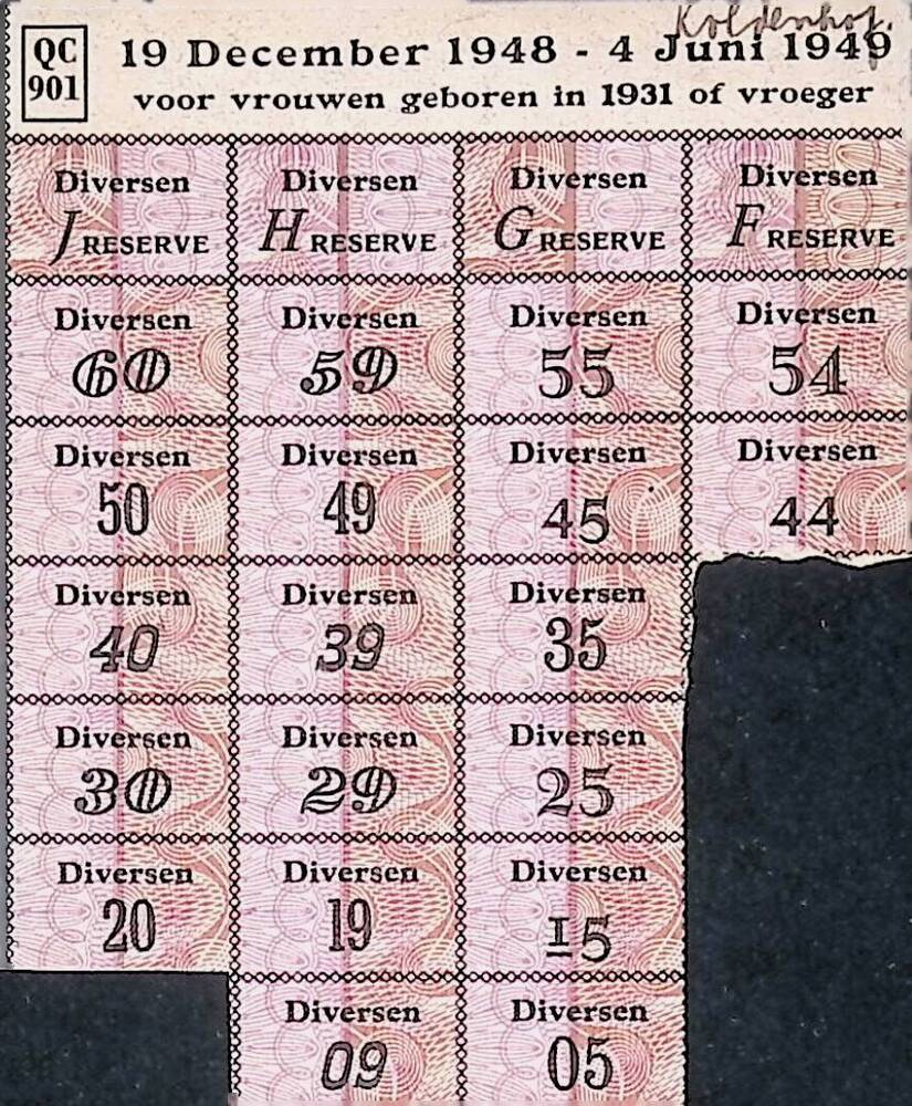 Bonkaart diversen, 19 december 1948 - 4 juli 1949