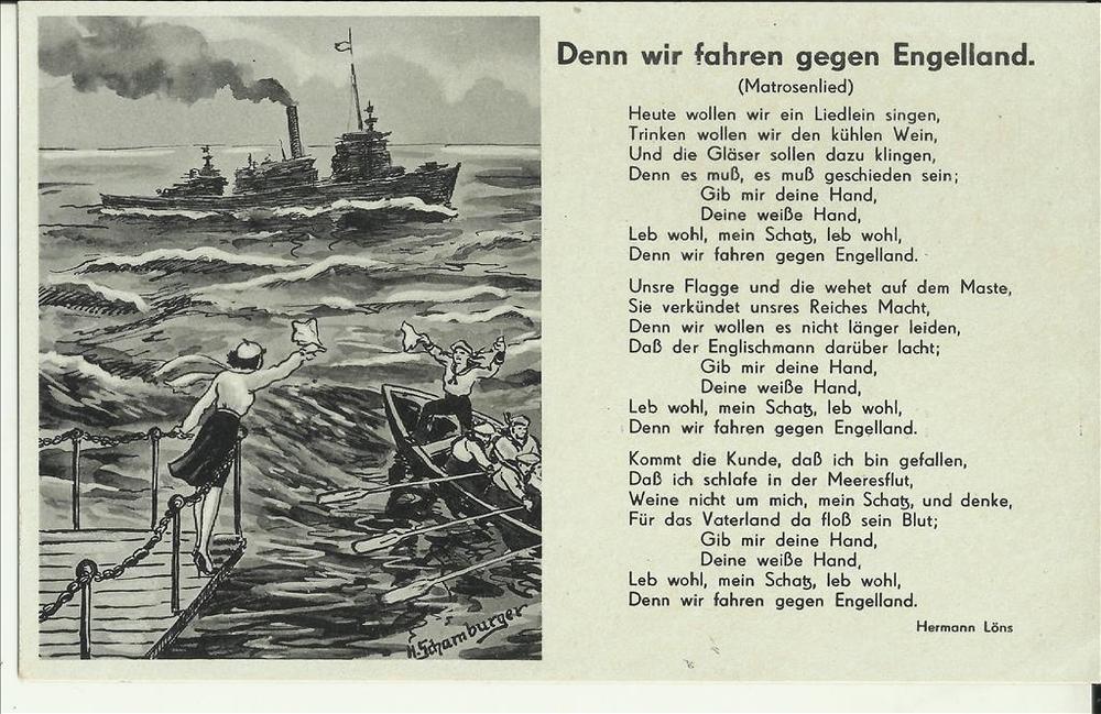 Ansichtkaart met daarop een foto en een liedtekst, D...