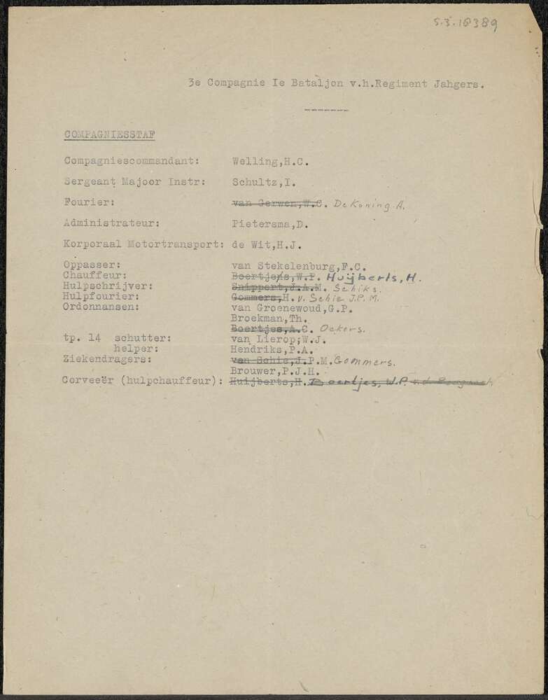 Vel met samenstelling compagniestaf 3e Compagnie Ie ...
