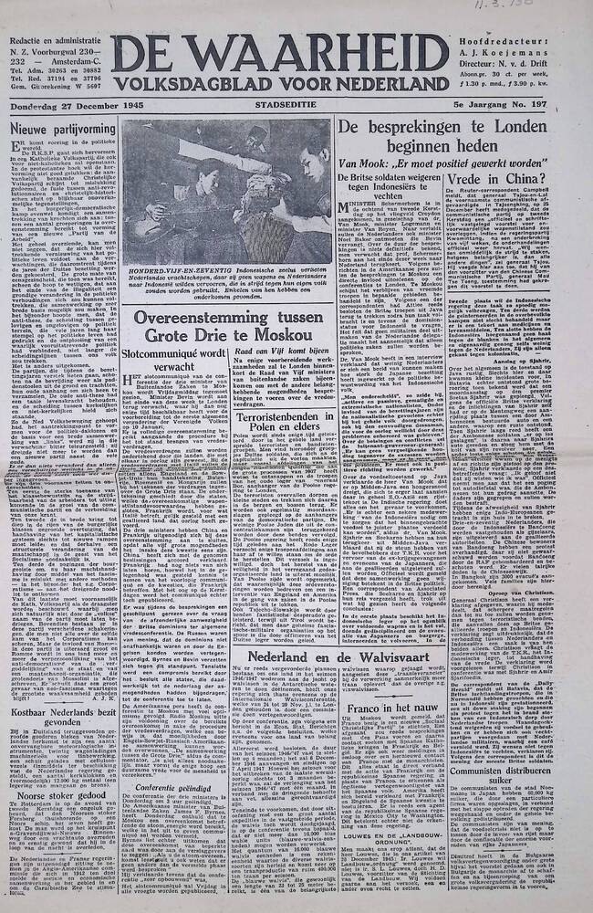 De Waarheid, 27 december 1945, 5e jaargang no 197