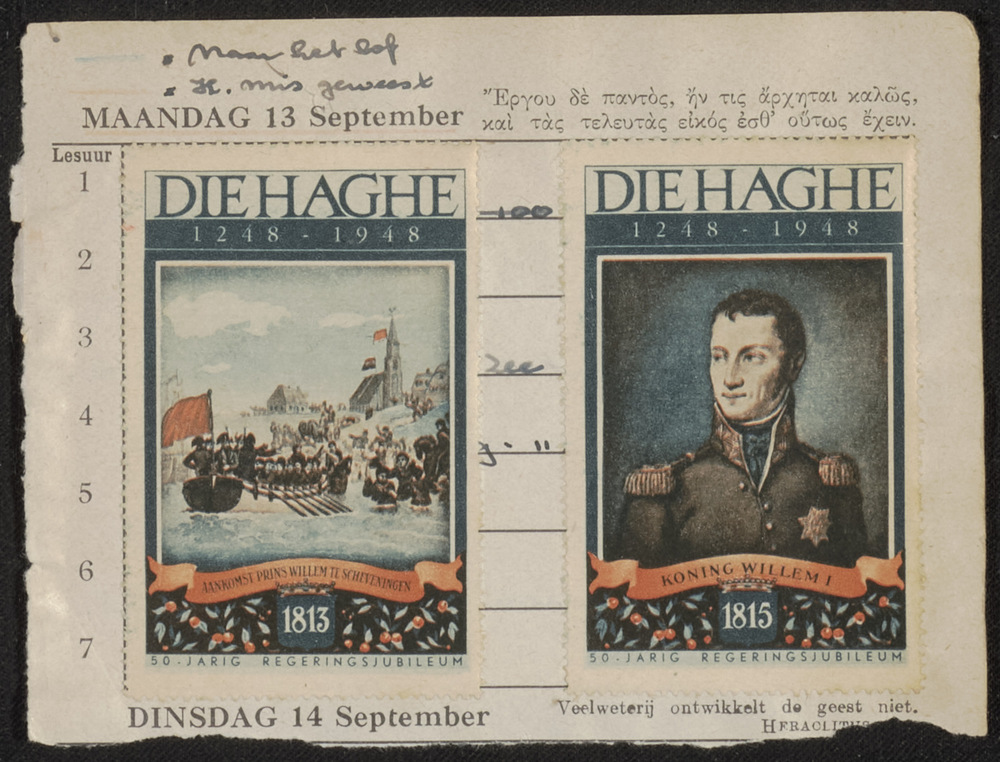 Bladzijde uit schoolagenda met sluitzegels