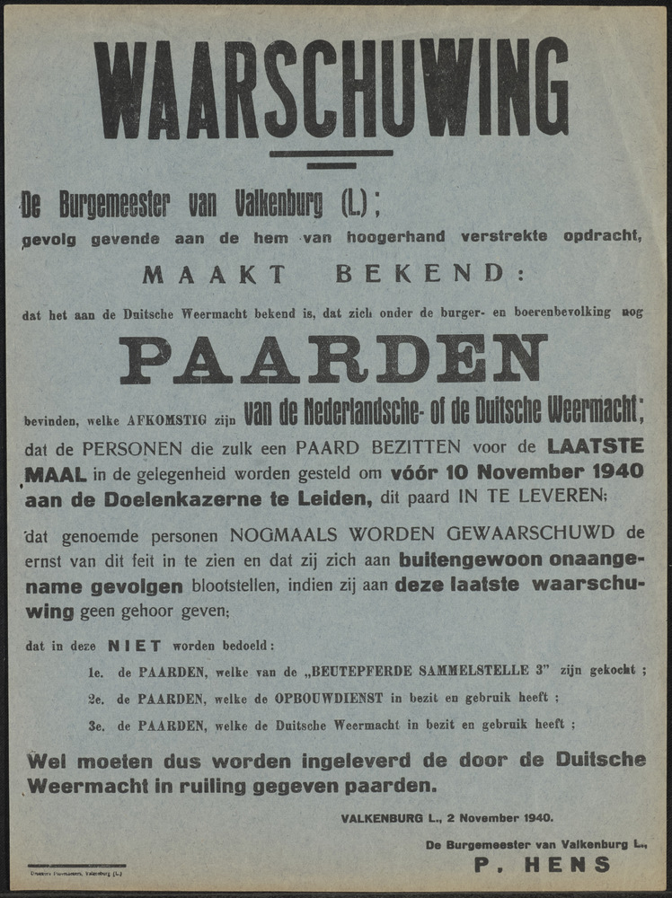 Kopie van een Affiche "Waarschuwing, De Burgemeester...