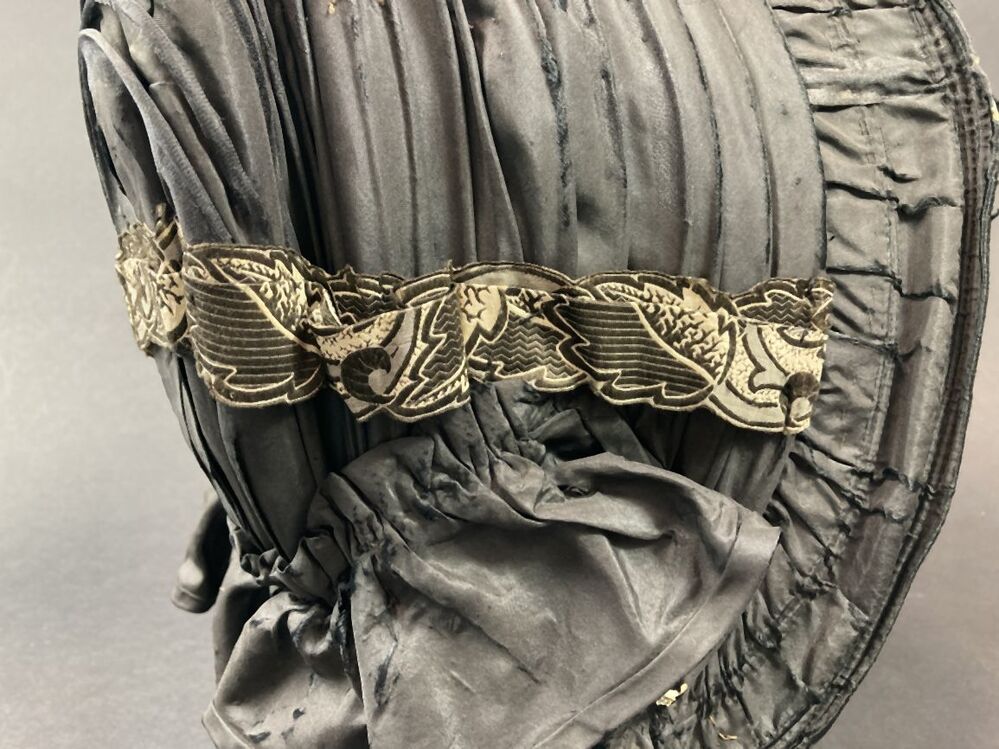 Hoedje van zwarte zijde versierd met enige linten