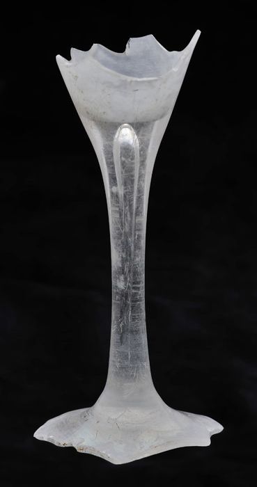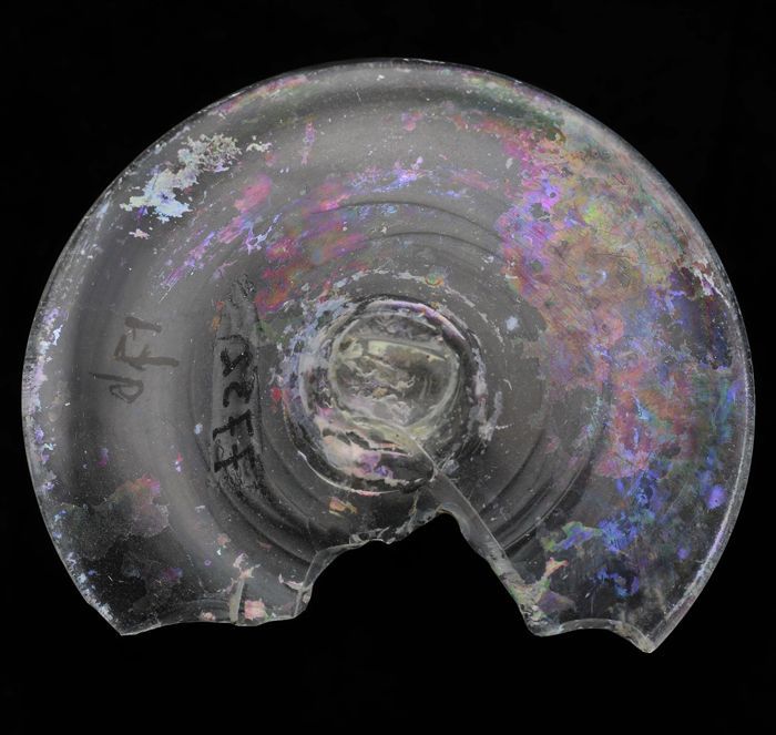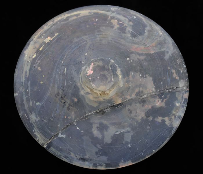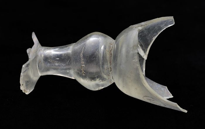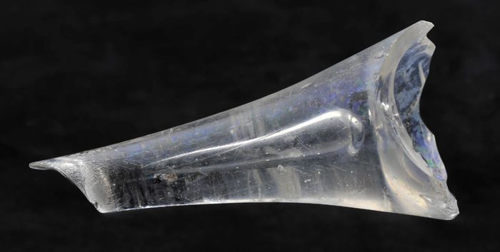 Fragmenten van glazen kelkglas met facet geslepen stam