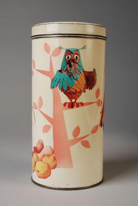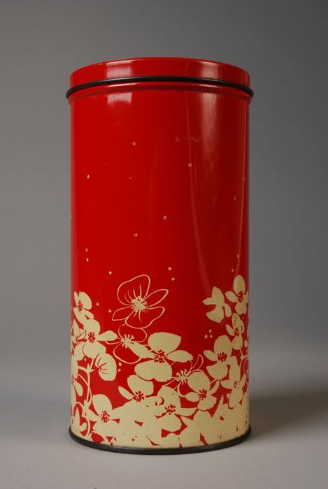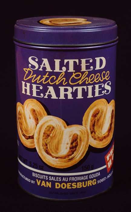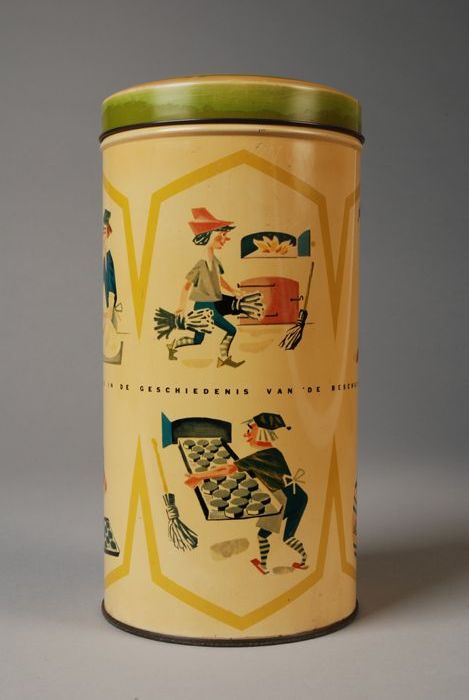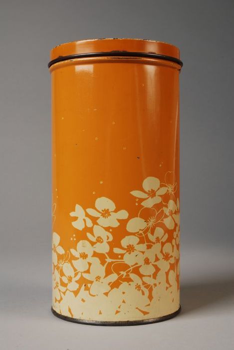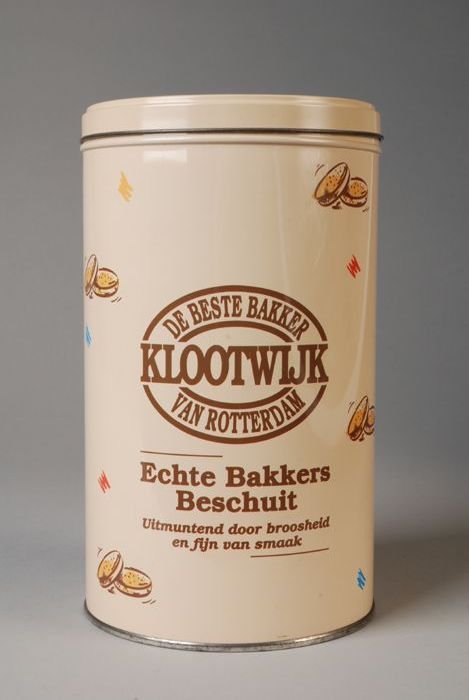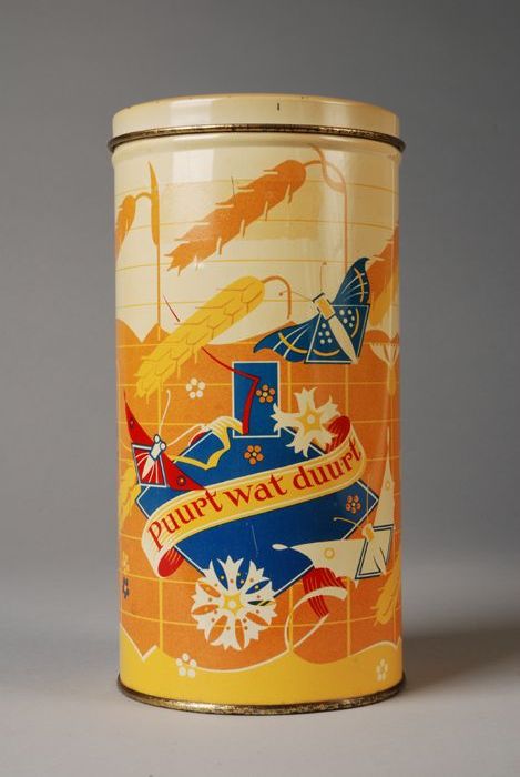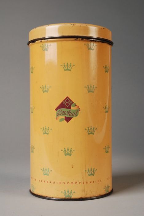 Cilindrisch geel beschuitblik Verkade, met gekleurde...