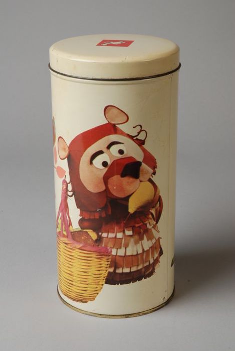 Cilindrisch wit Bolletje beschuitblik met Fabeltjesk...