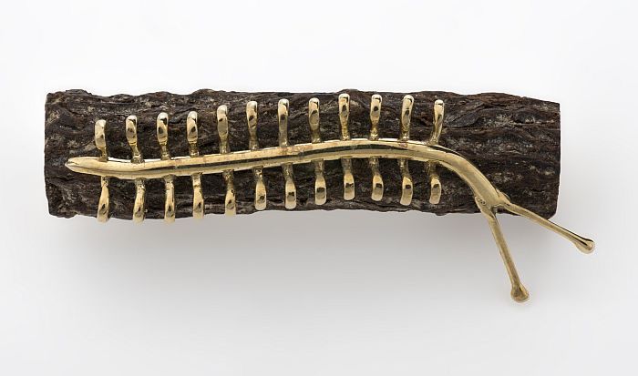 Gouden gestileerde duizendpoot op een takje zoethout...