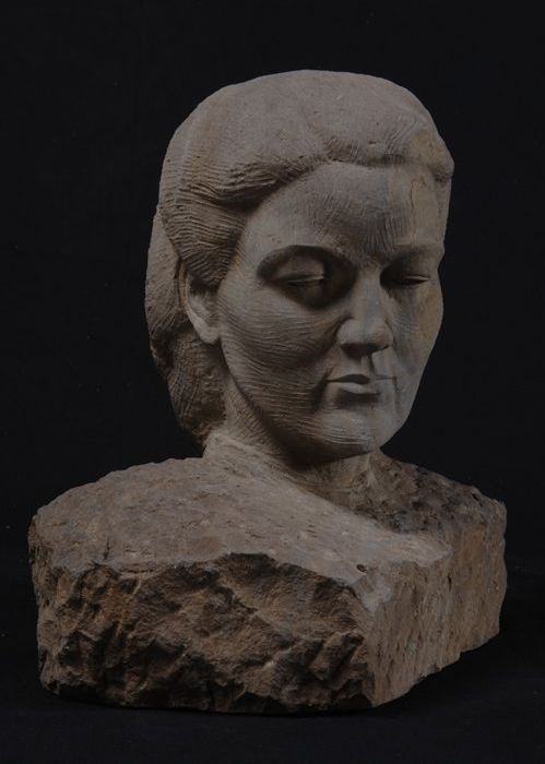 Kop van vrouw, gehakt uit een blok Bentheimer-zandst...