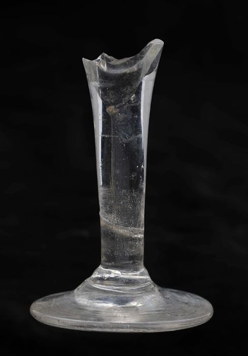 Fragment van kelkglas met slanke stam, waarin een lu...