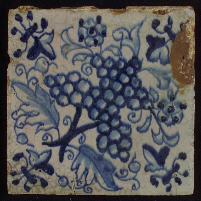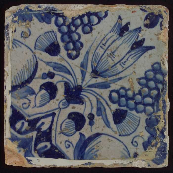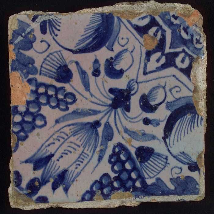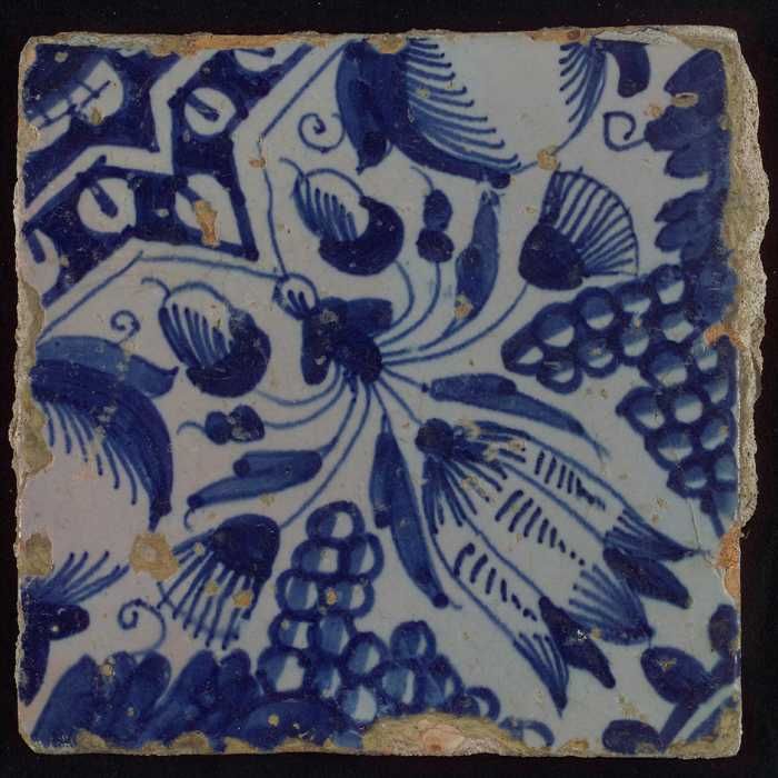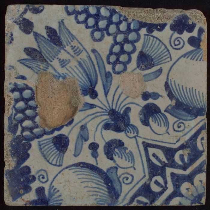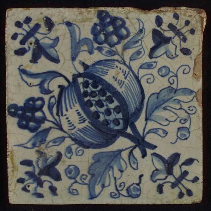 Ornamenttegel, centraal diagonaal geplaatste granaat...