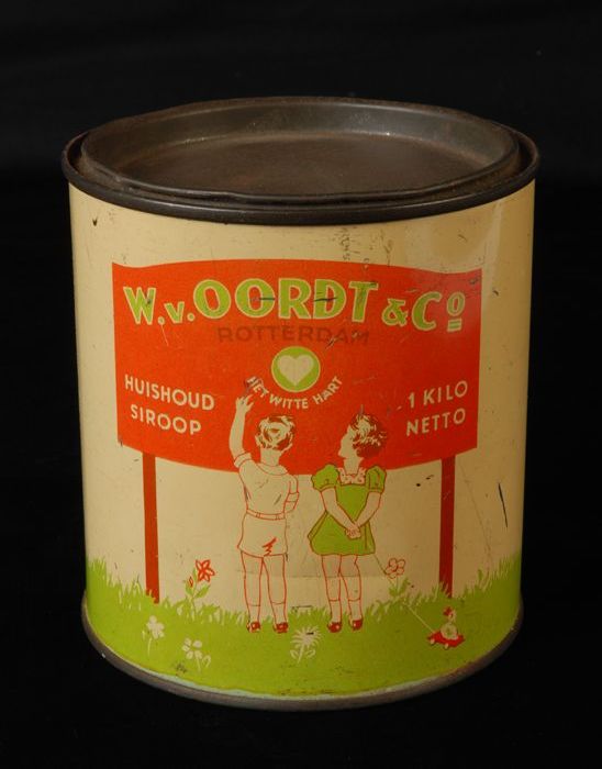 Rond blik met klemdeksel, "van Oordt, huishoudsiroop...