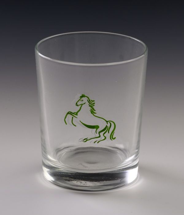 Drinkglas met logo CHIO; dubbel, steigerend paard in...