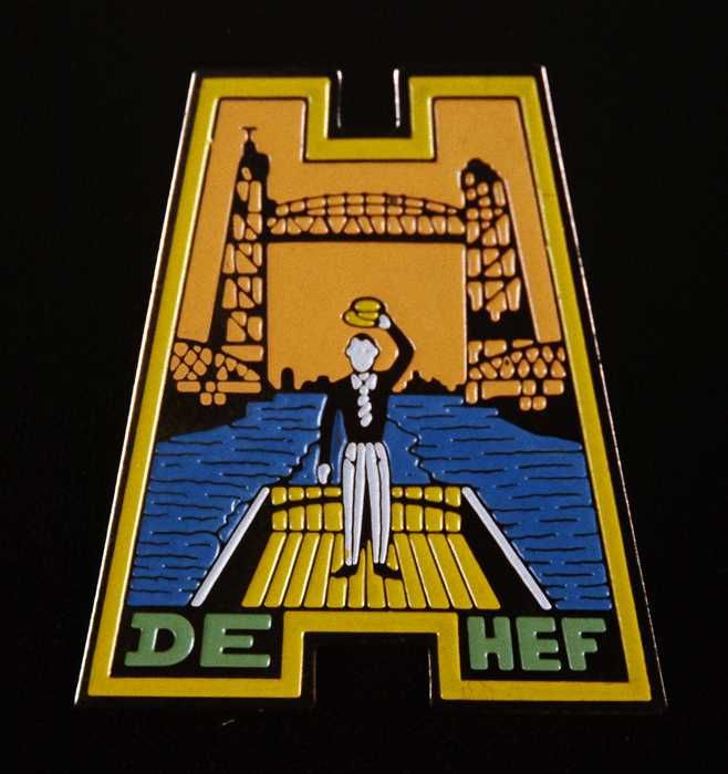 Geëmailleerd plaatje met pin "De Hef"