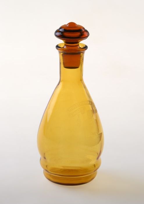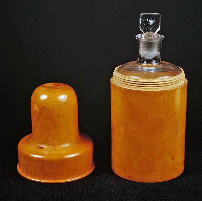 Transparante kleurloze stopfles in houten foedraal