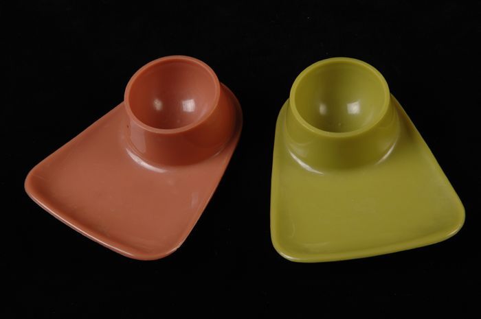 Twee plastic eierdoppen met 'schillenbakje'