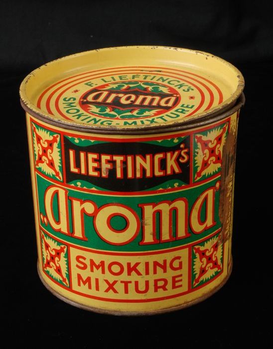 Groot rond blik met los deksel, Lieftinck's Aroma sm...