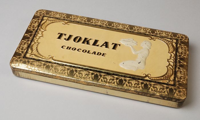 Rechthoekig blik met scharnierend deksel, "Tjoklat, ...