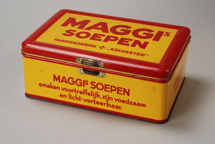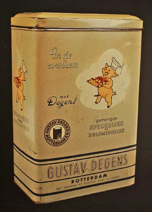 Groot rechthoekig blik met scharnierend deksel, "Gus...