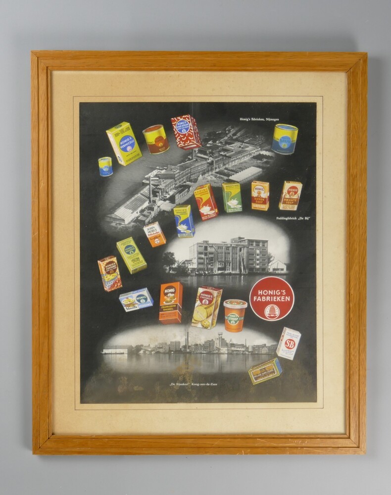 reclameplaat van Honig's fabrieken, papier op hout, ...