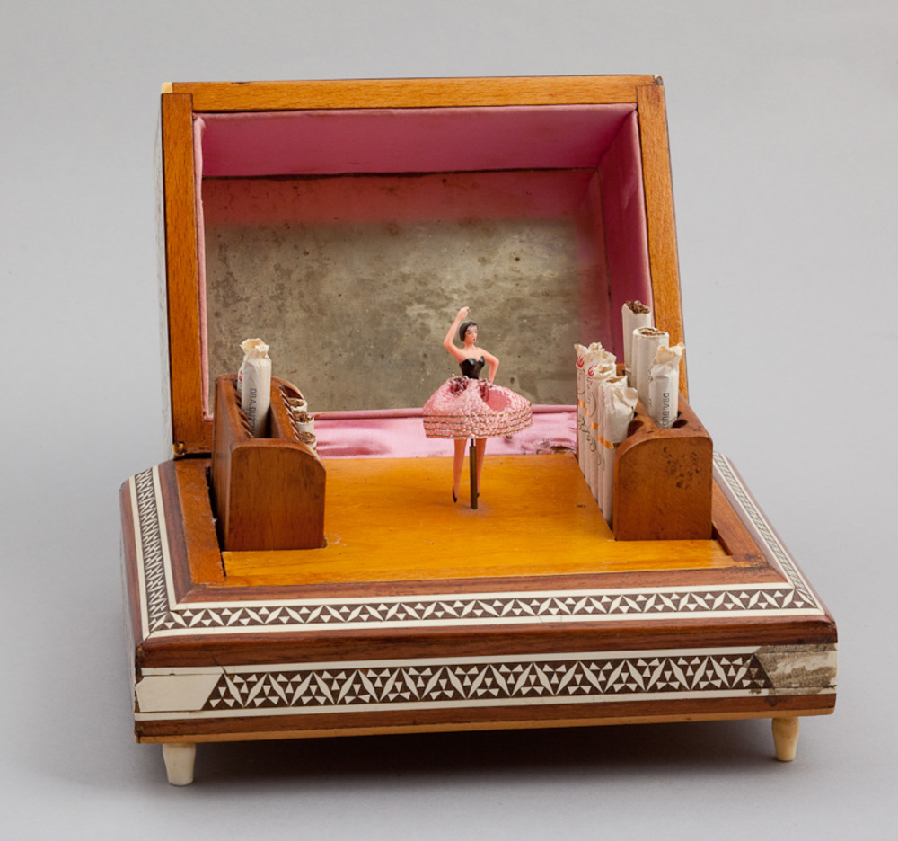 Egyptische cilinderspeeldoos met danseres gefabricee...