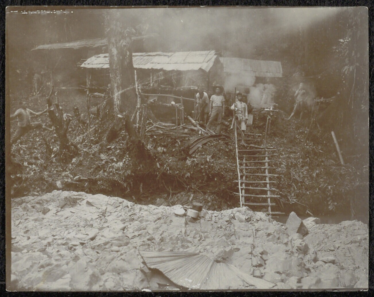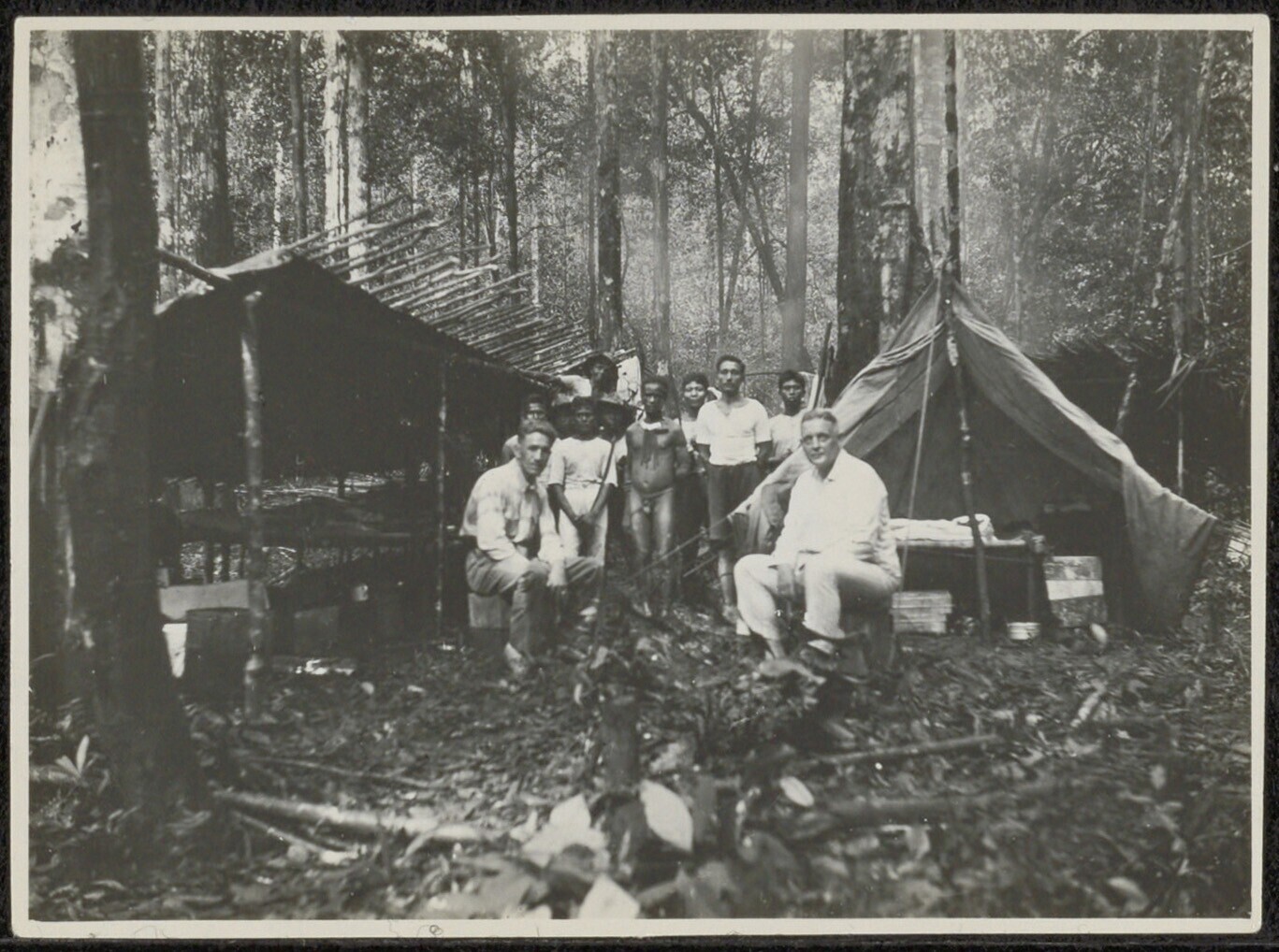 W.F. Eisma met zijn gevolg in een bivak in het gebie...