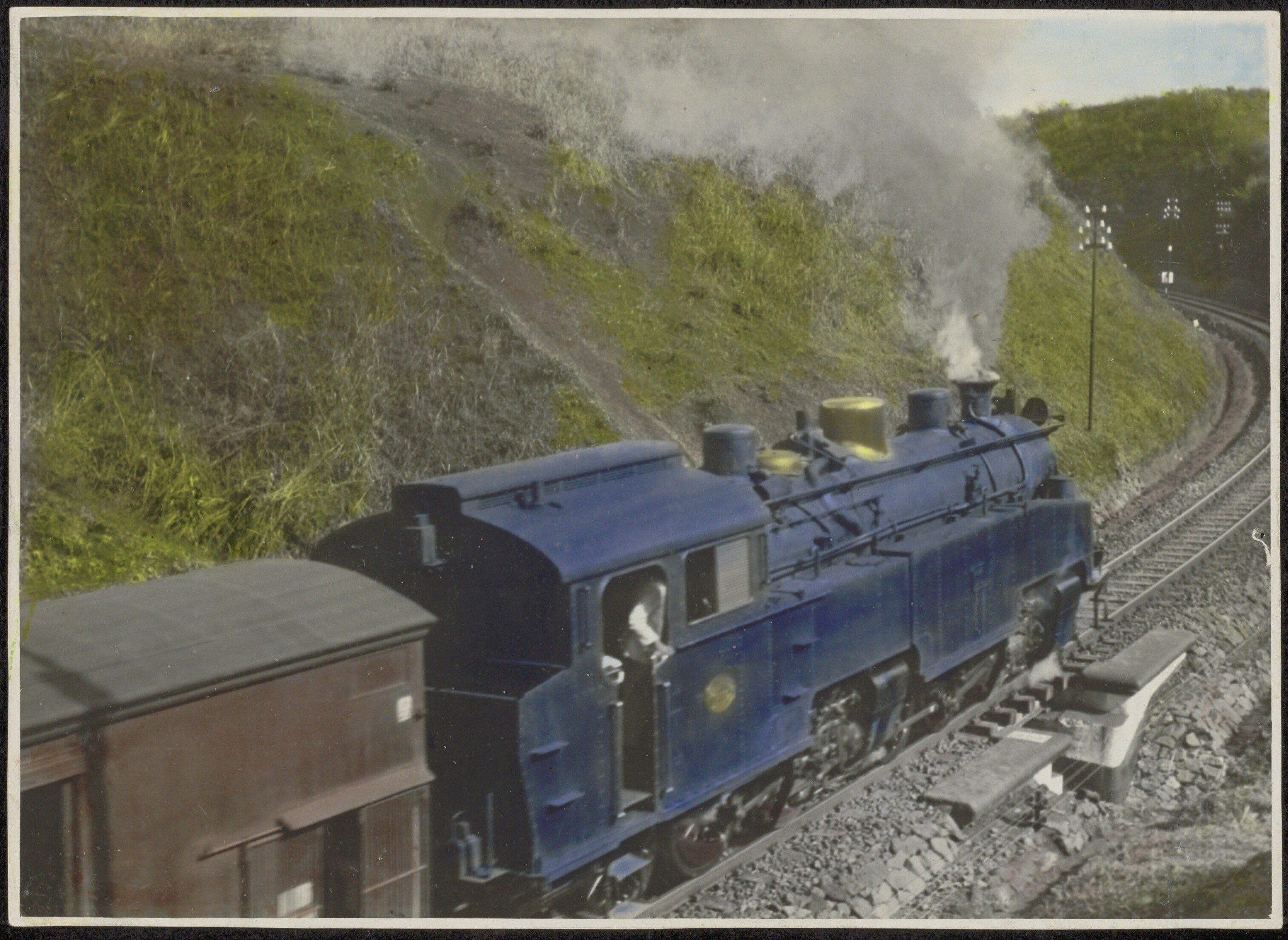 Stoomlocomotief met wagons in de Vlakte van Leles