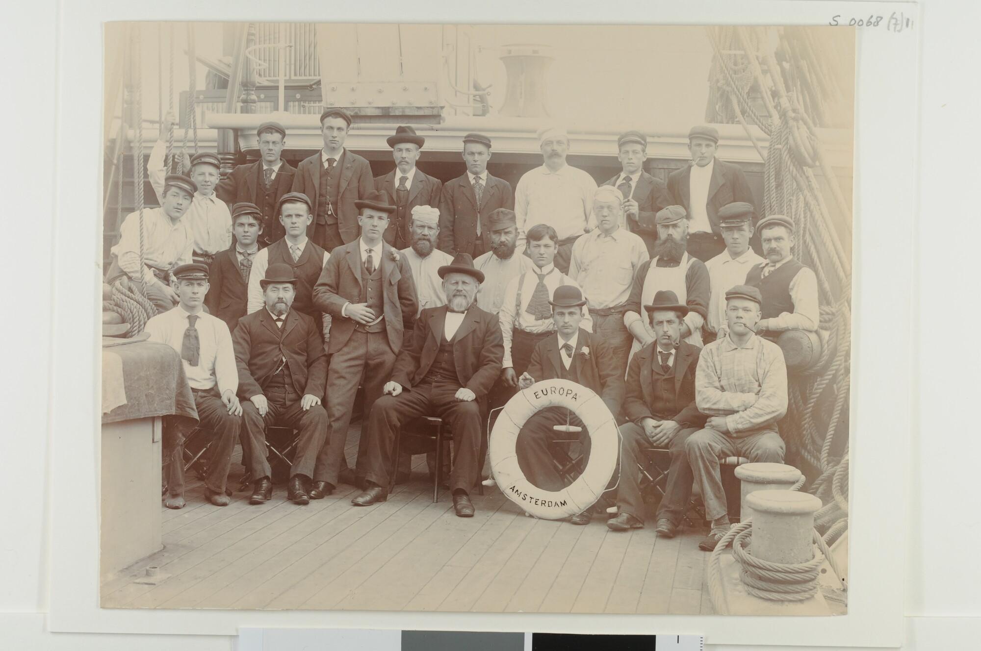 Groepsportret van kapitein G. Bona en bemanning aan ...