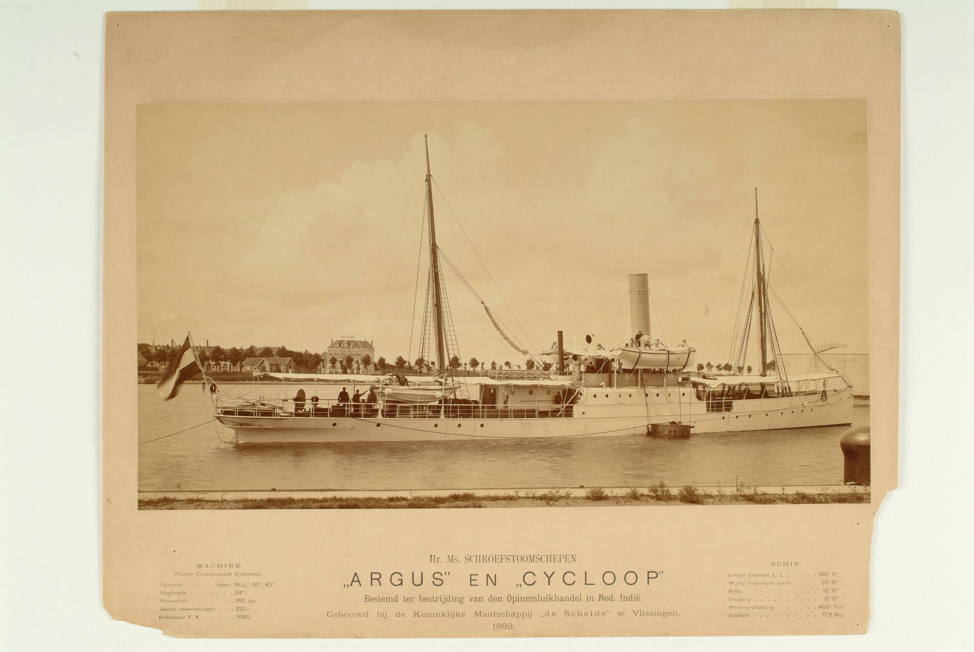 Het schroefstoomschip Zr.Ms. 'Argus' (of 'Cycloop') ...