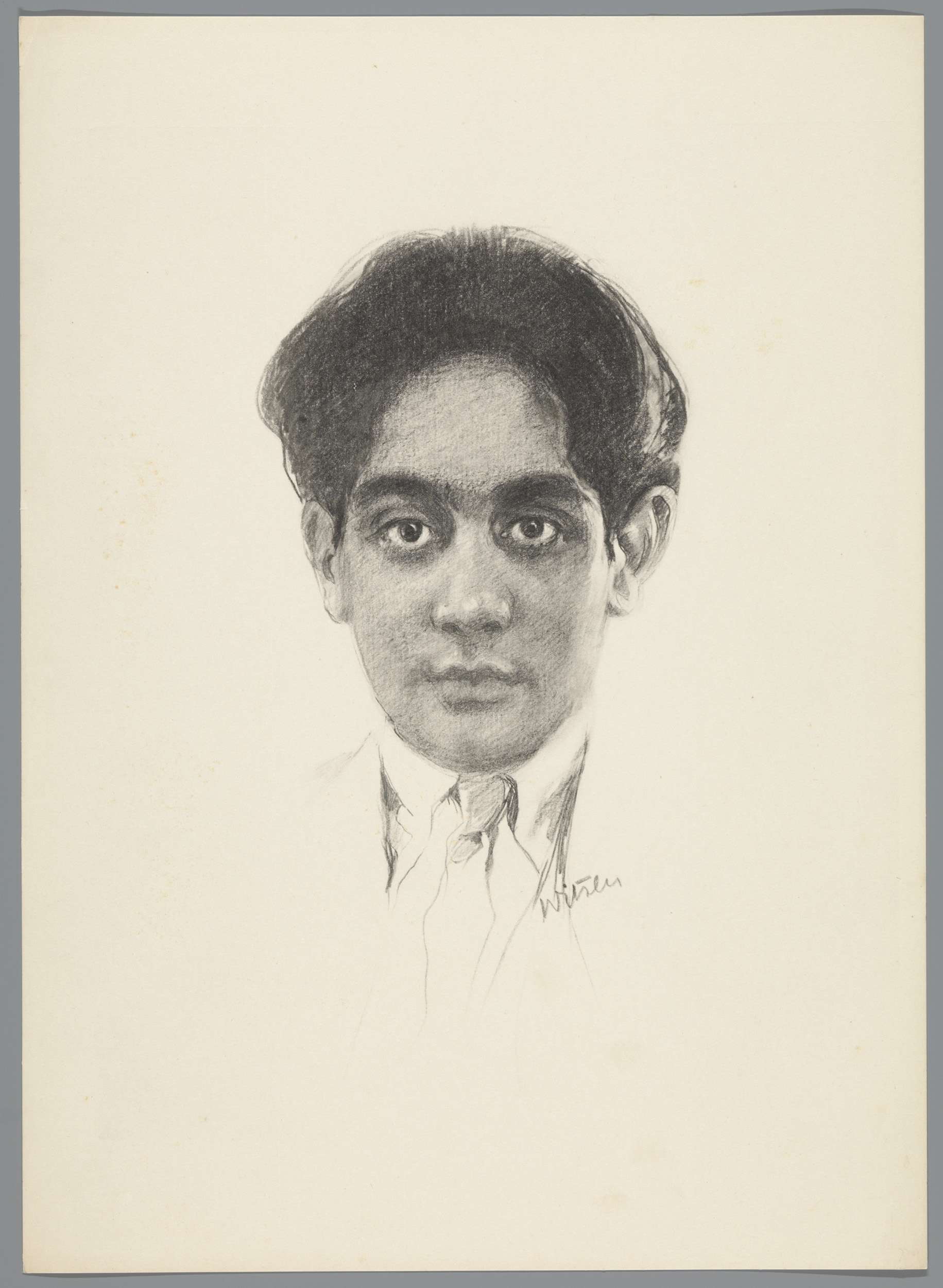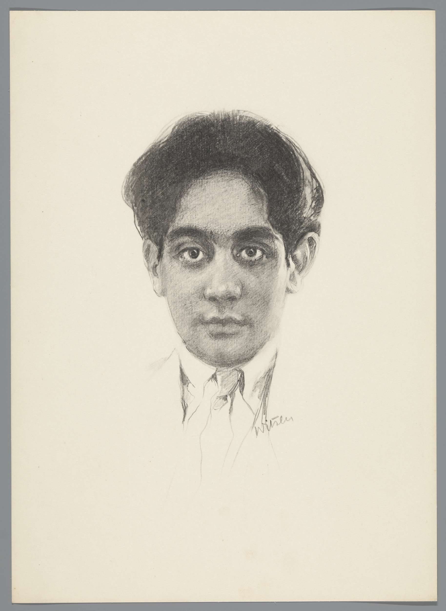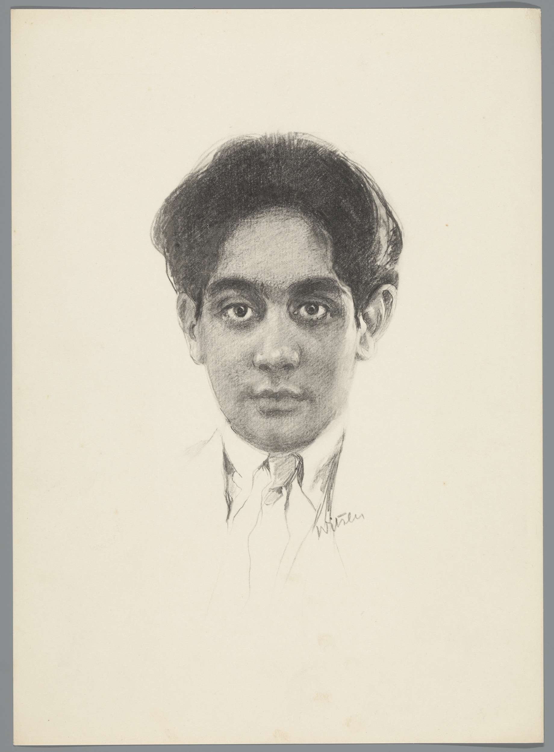 Reproductie van tekening met portret van Karamjit Si...