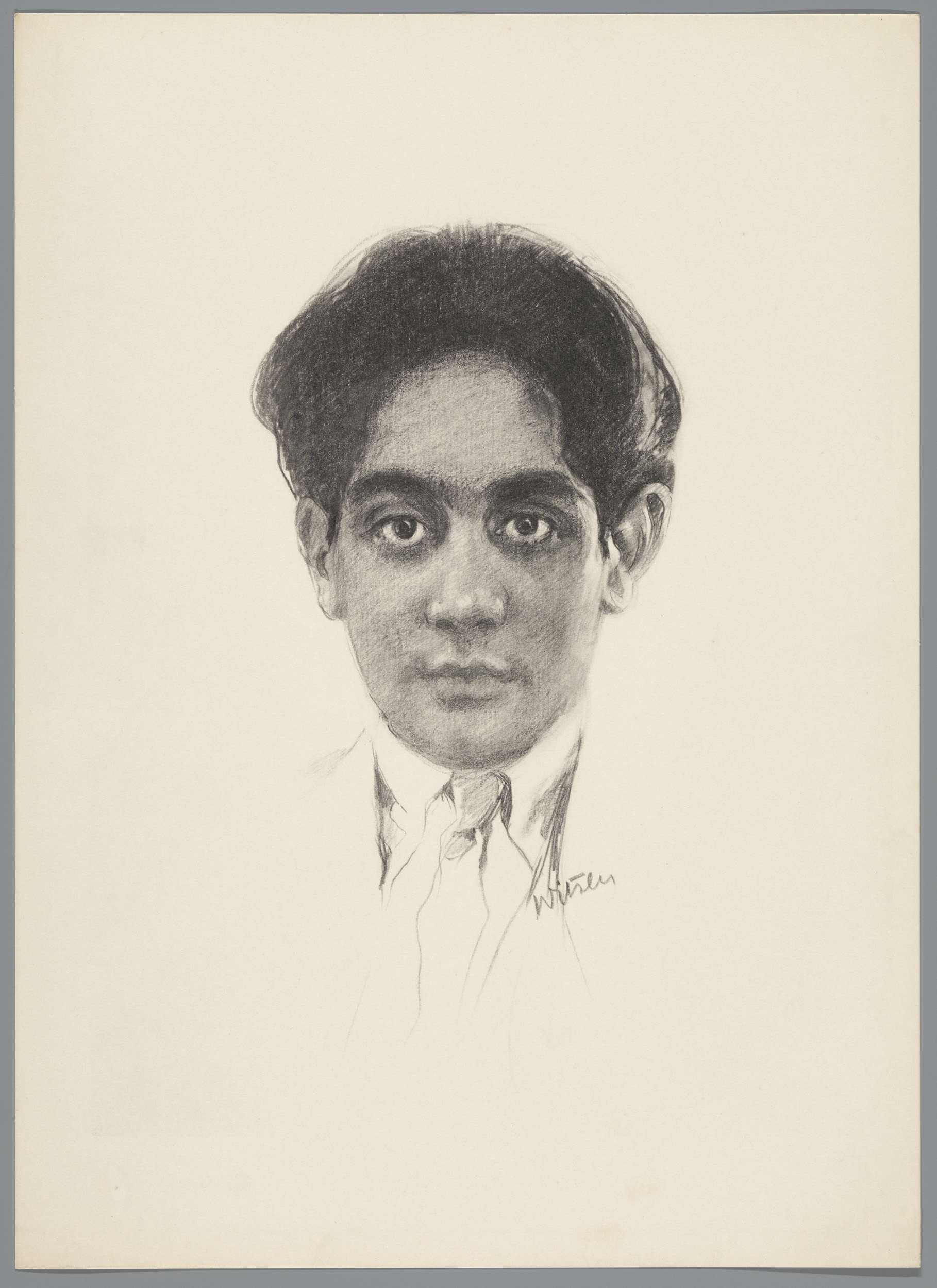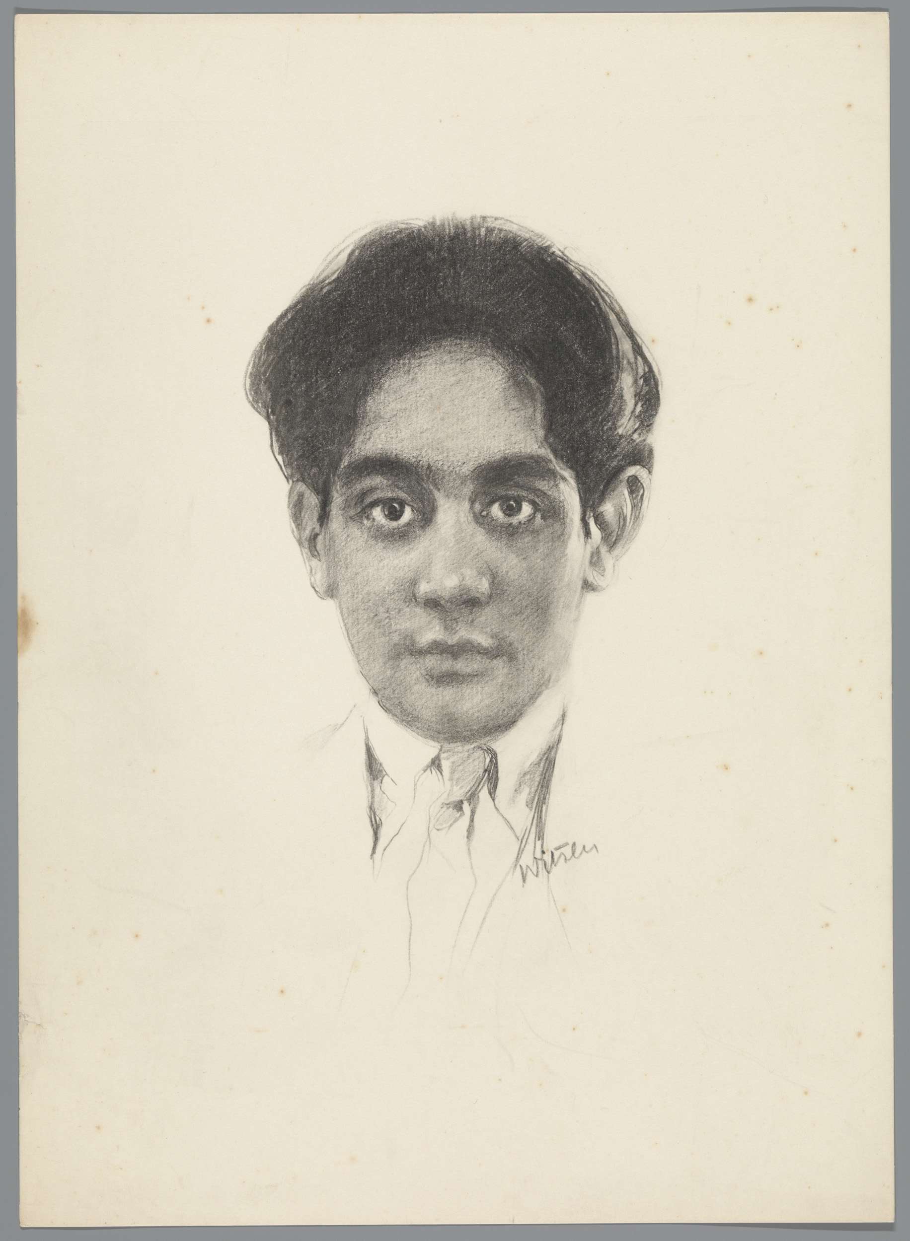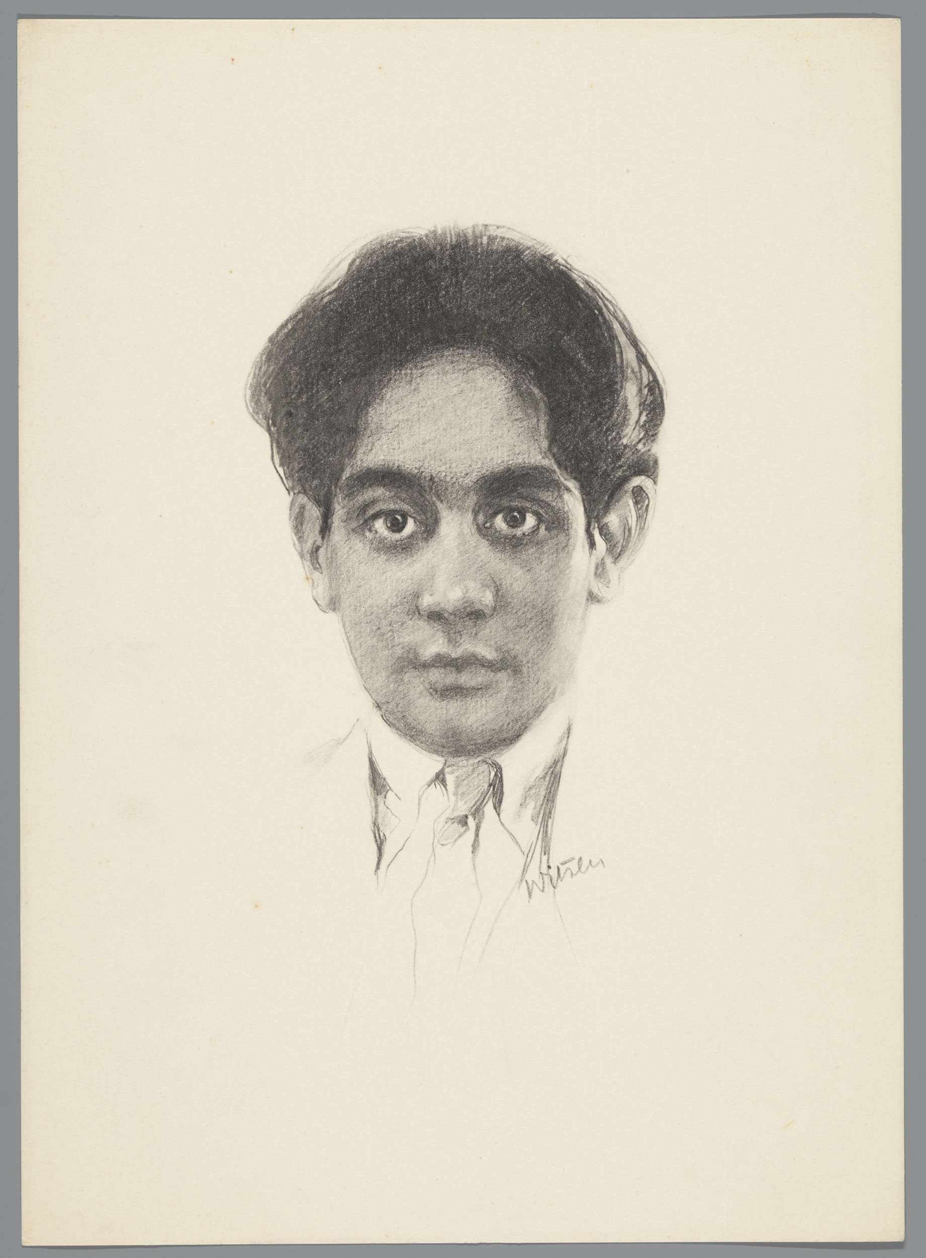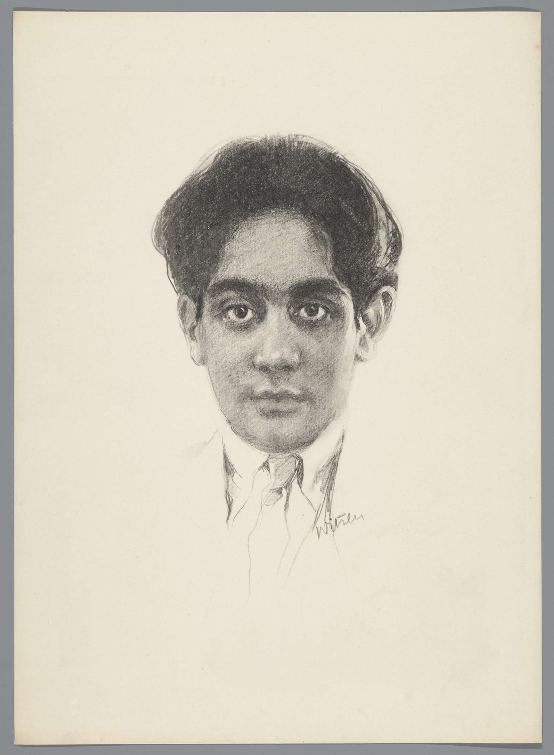 Reproductie van tekening met portret van Karamjit Si...