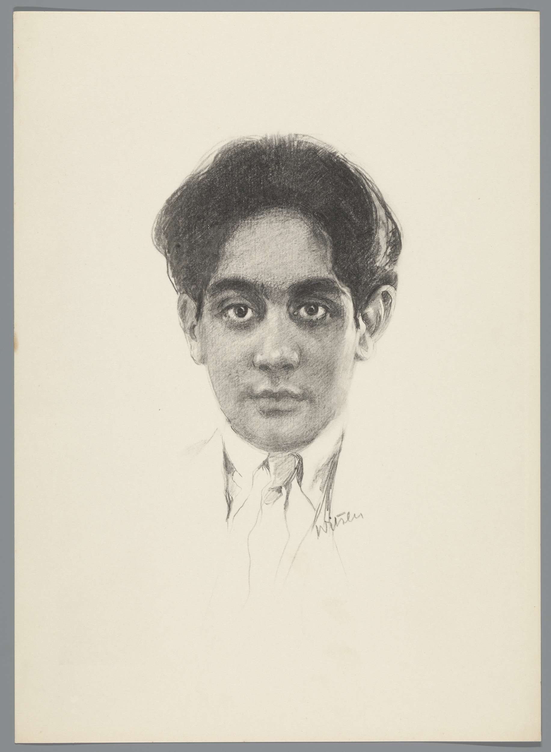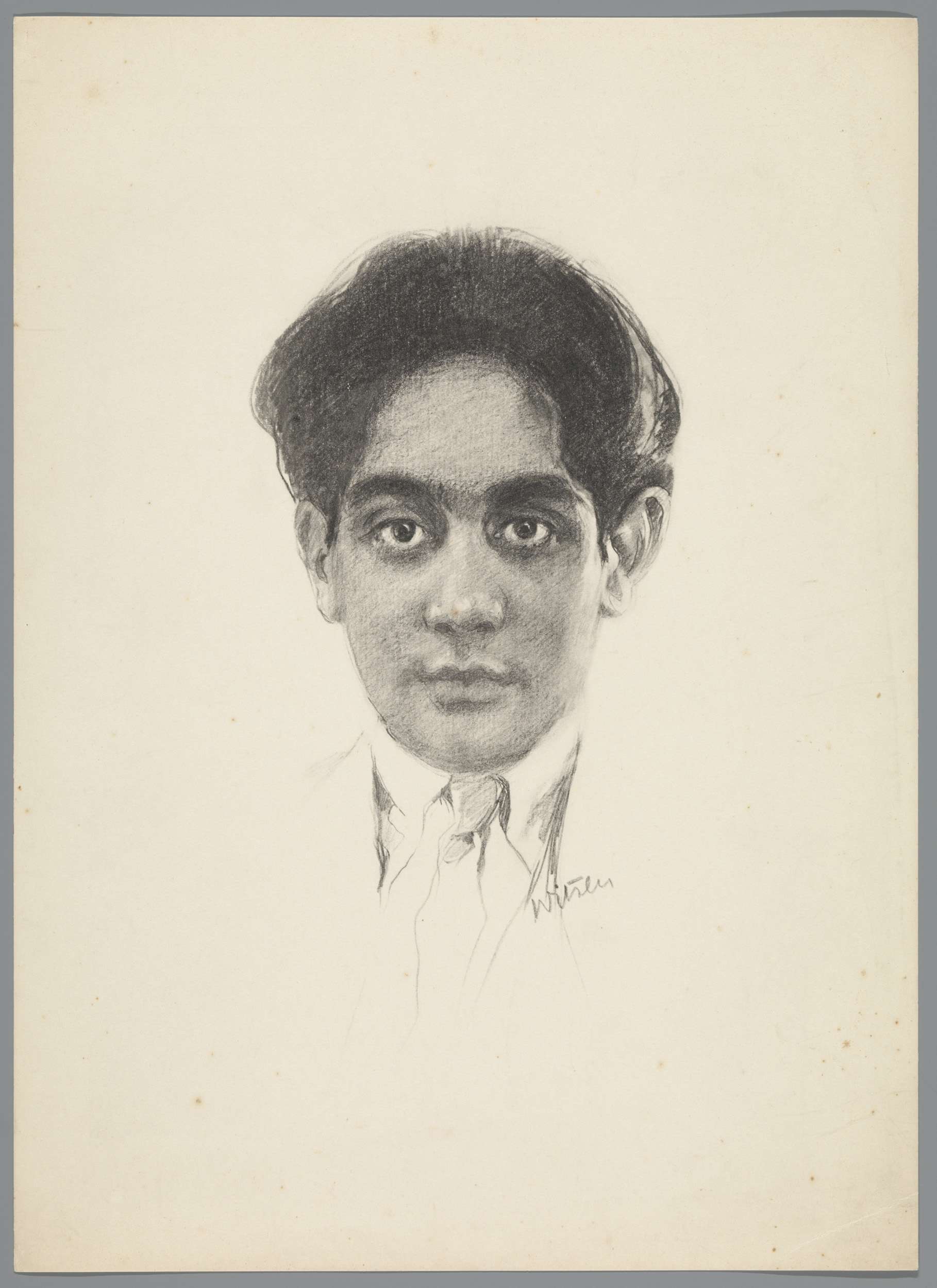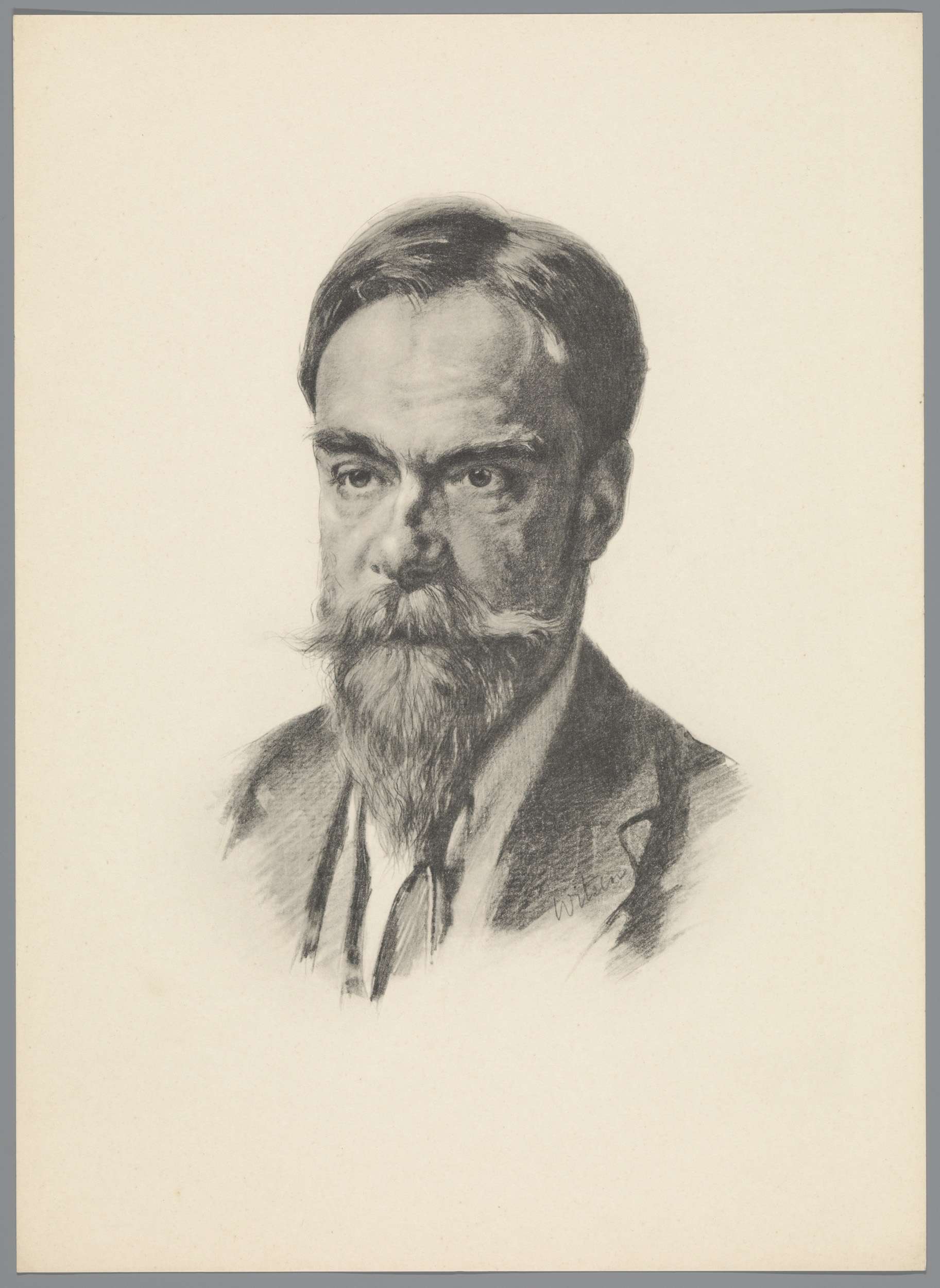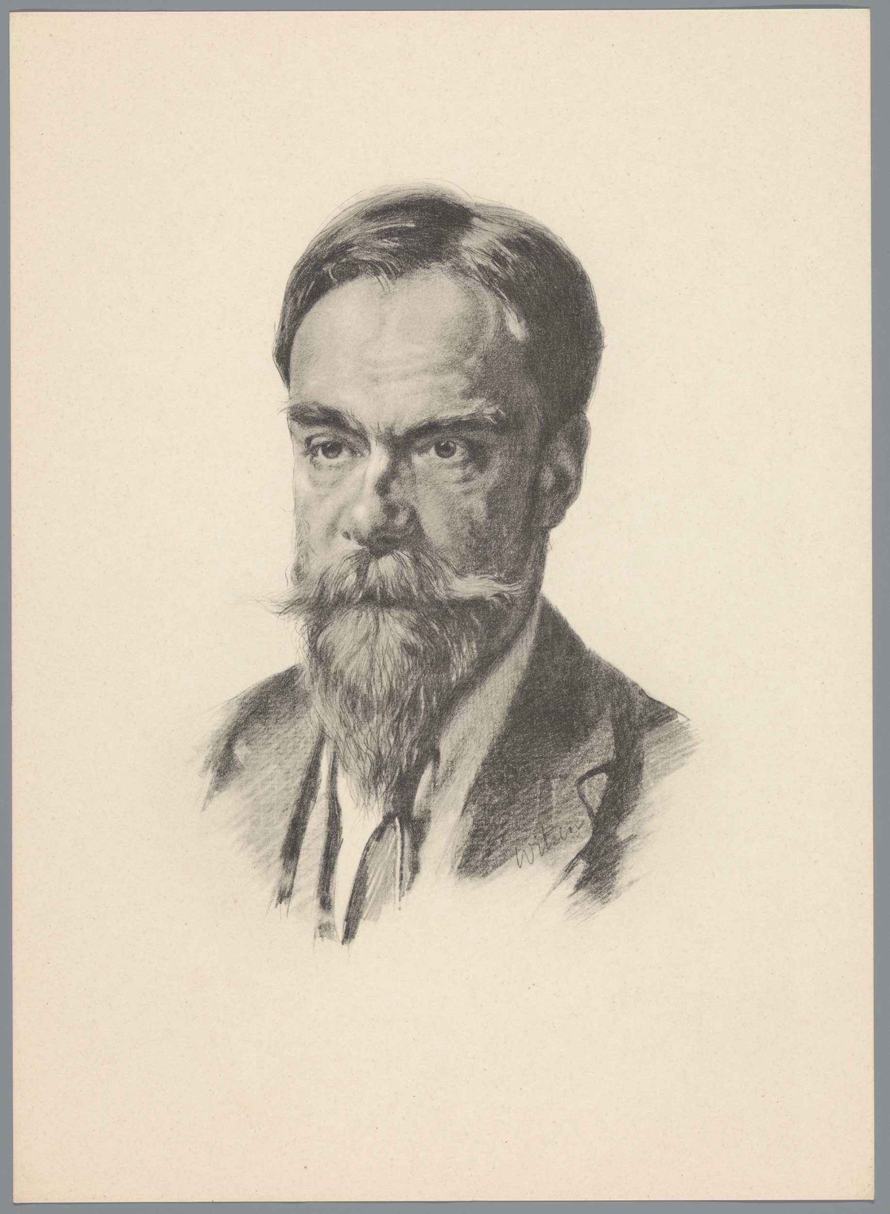 Reproductie naar krijttekening met portret van Frans...