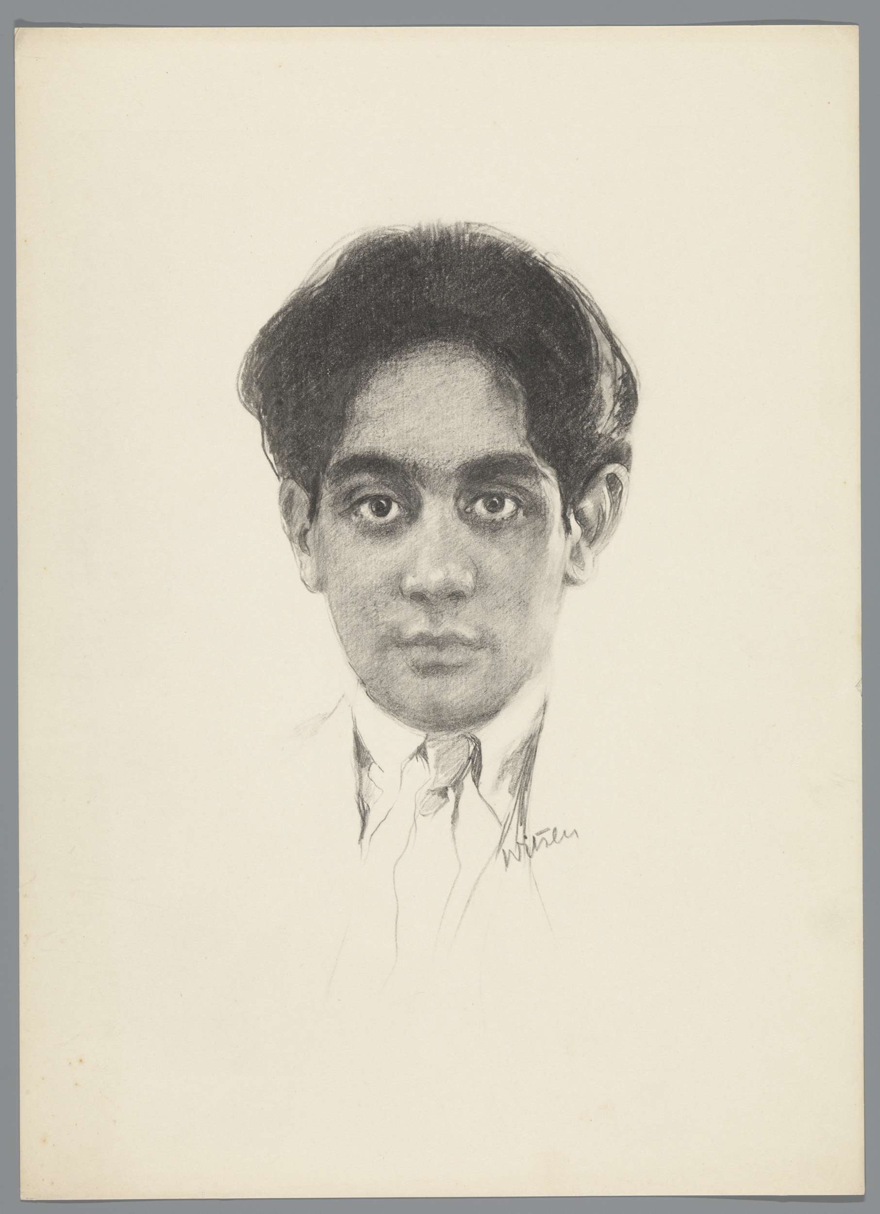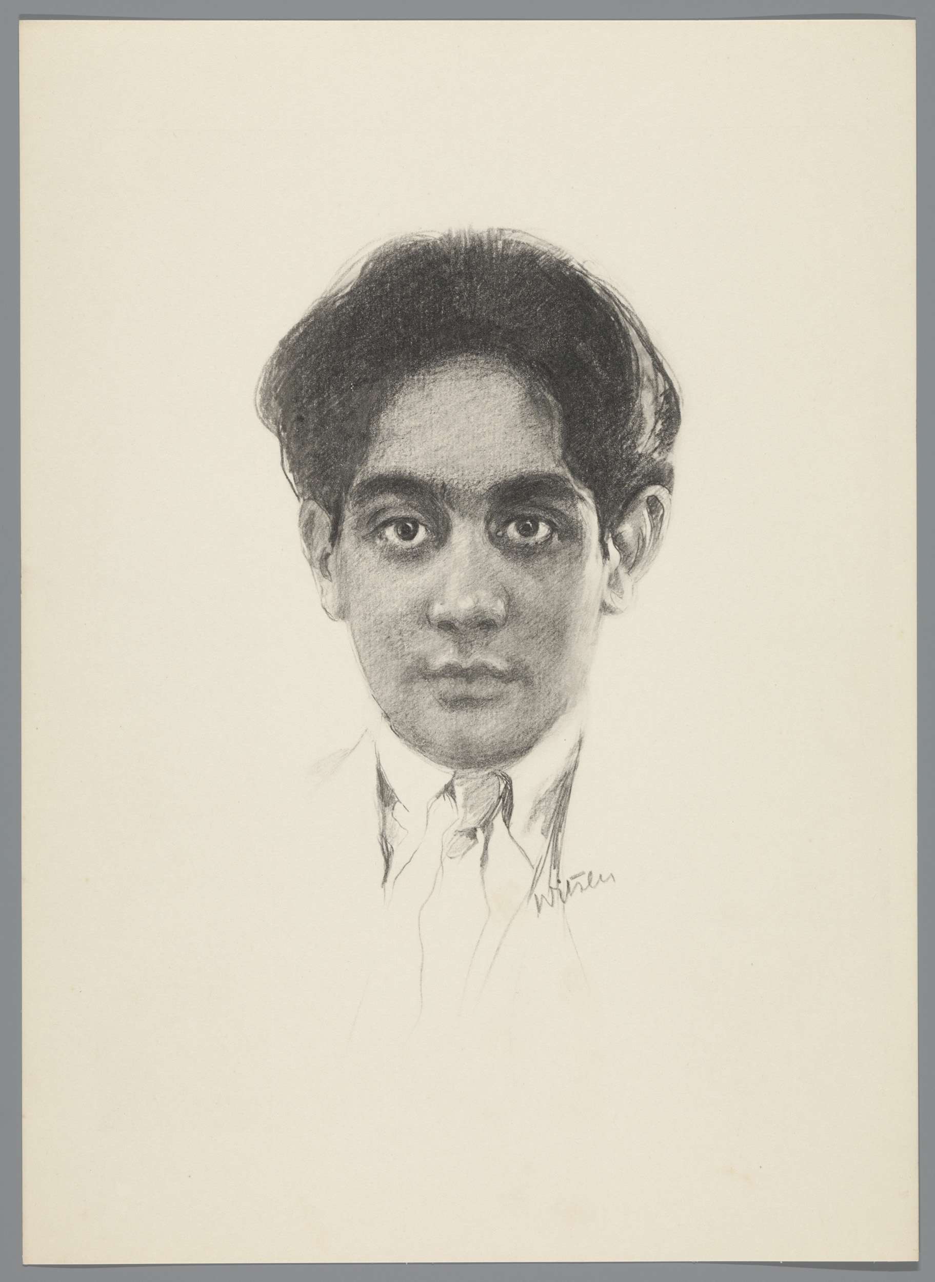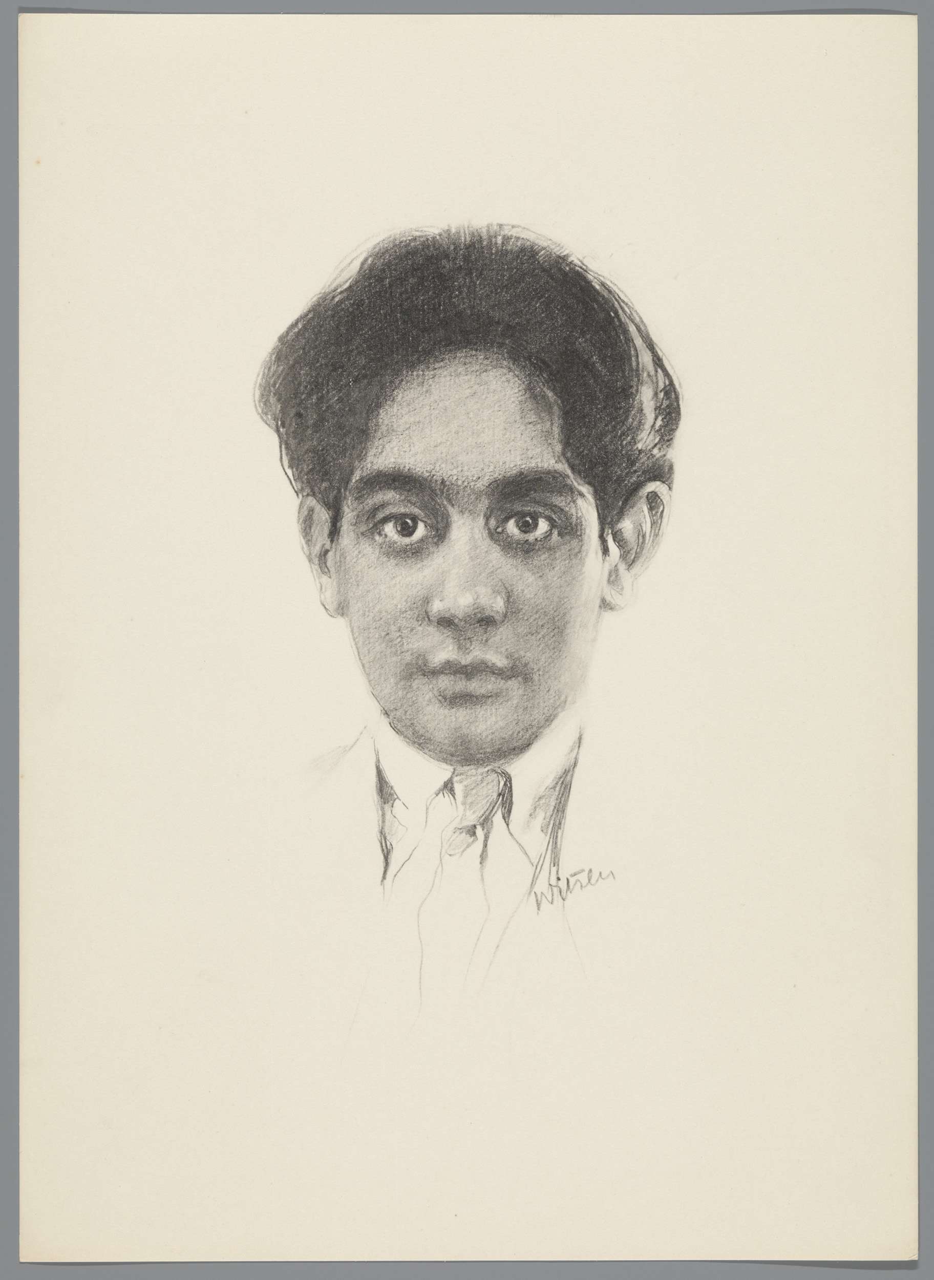 Reproductie naar krijttekening met portret van Frans...