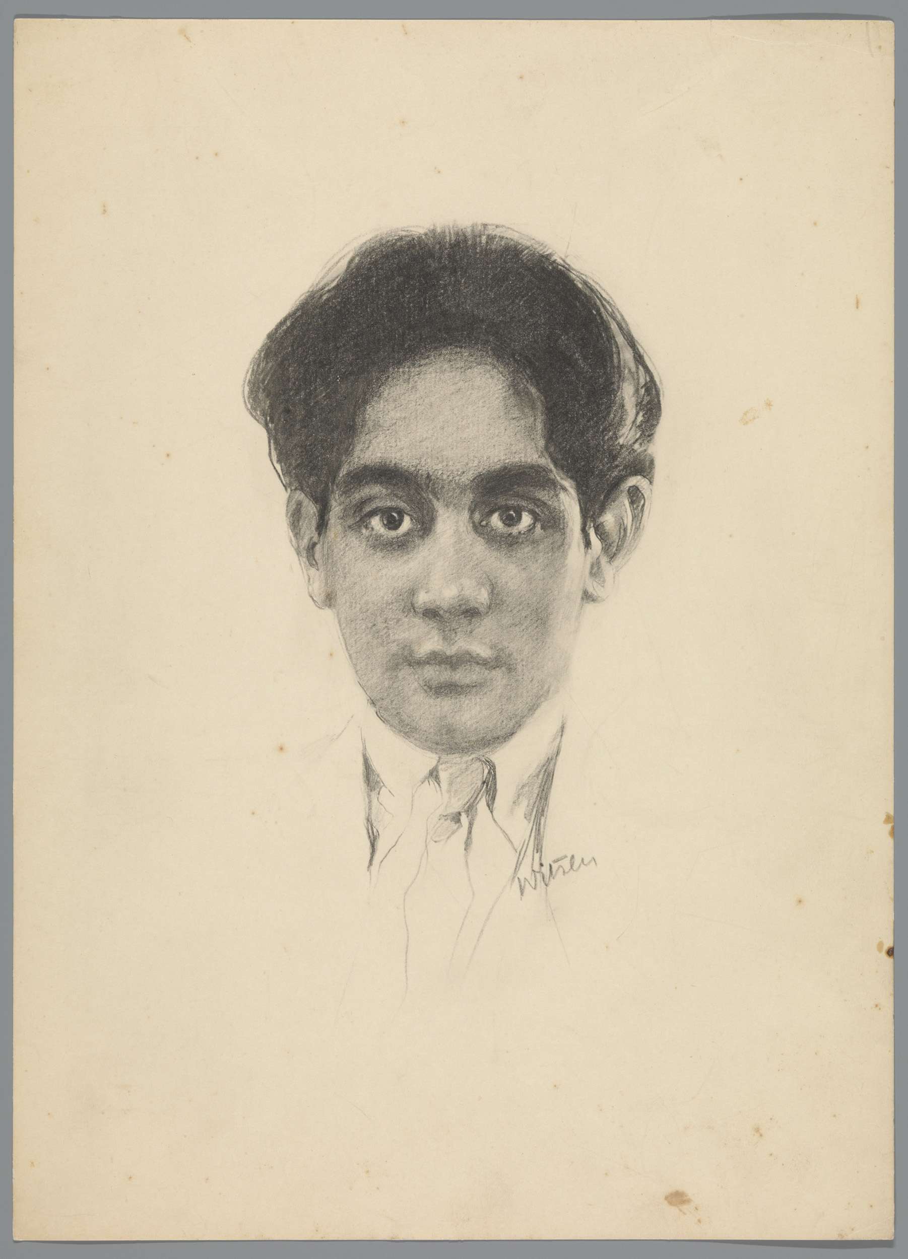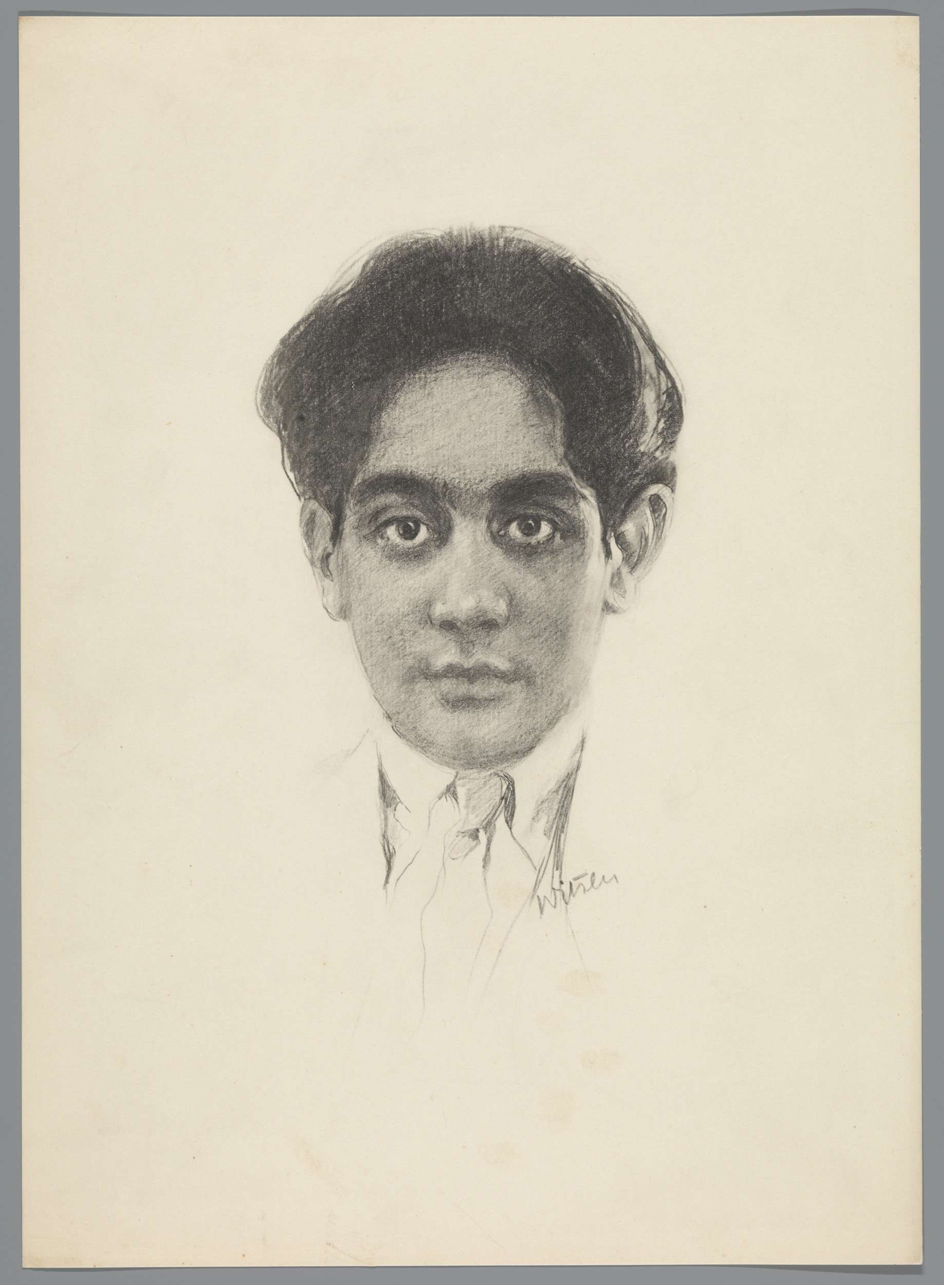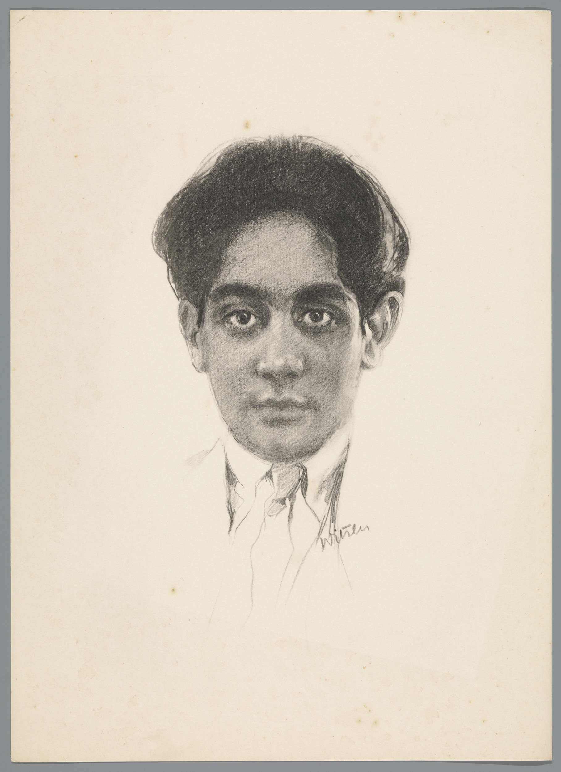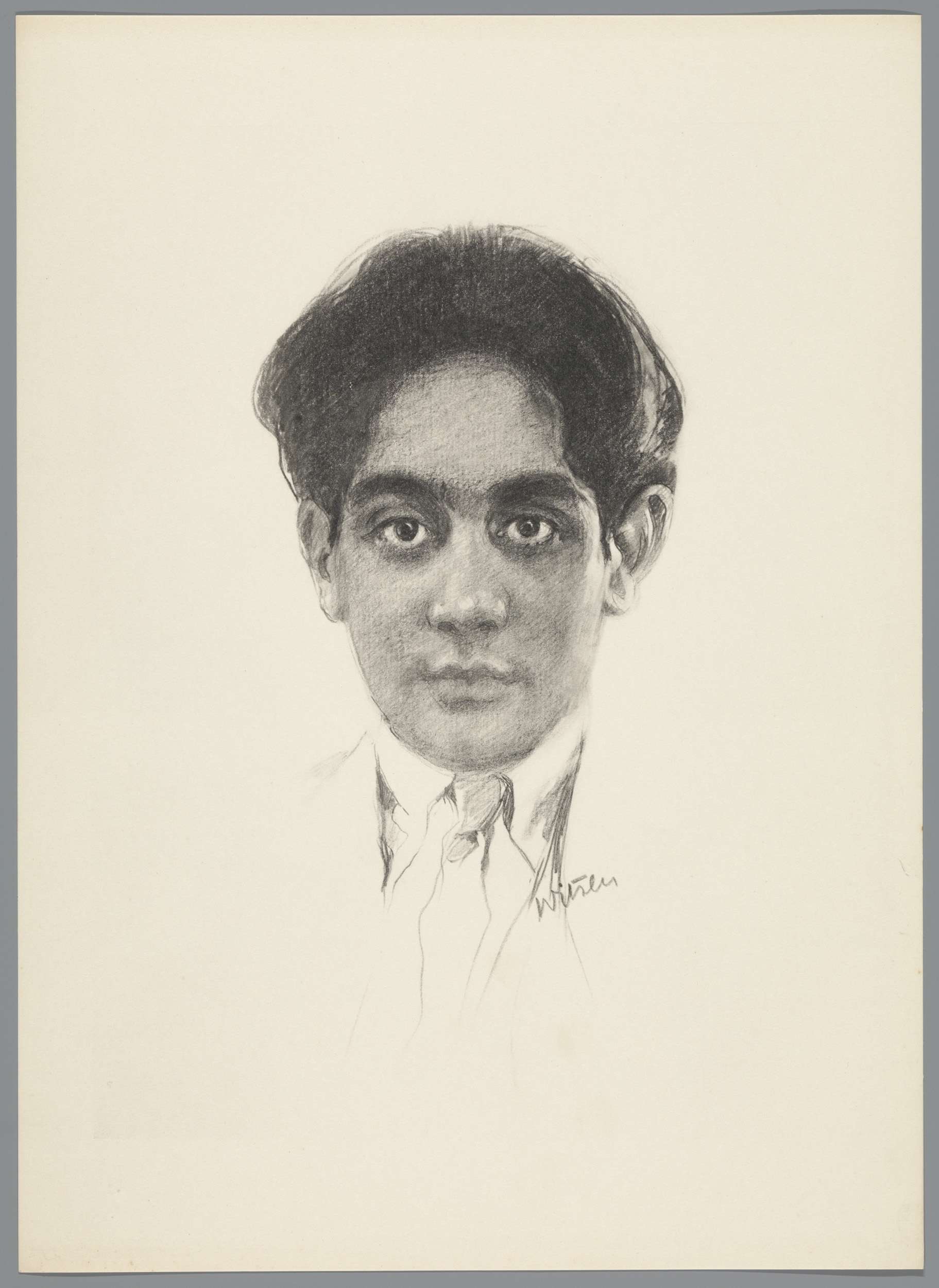 Reproductie naar krijttekening met portret van Frans...