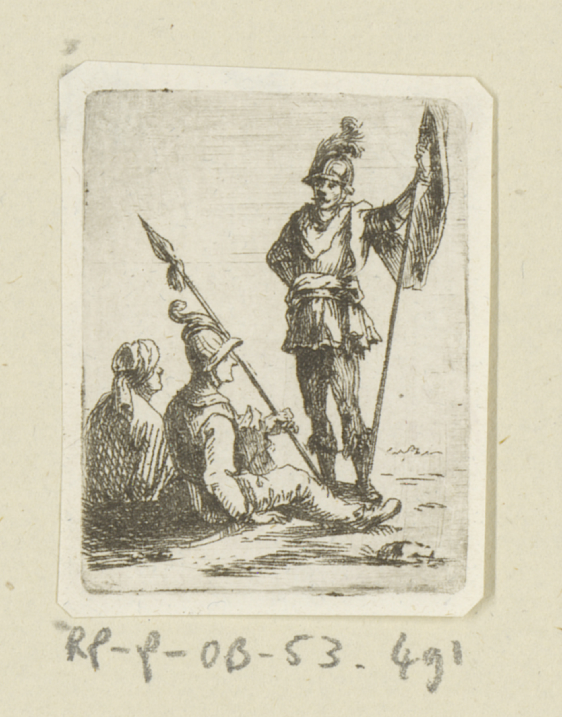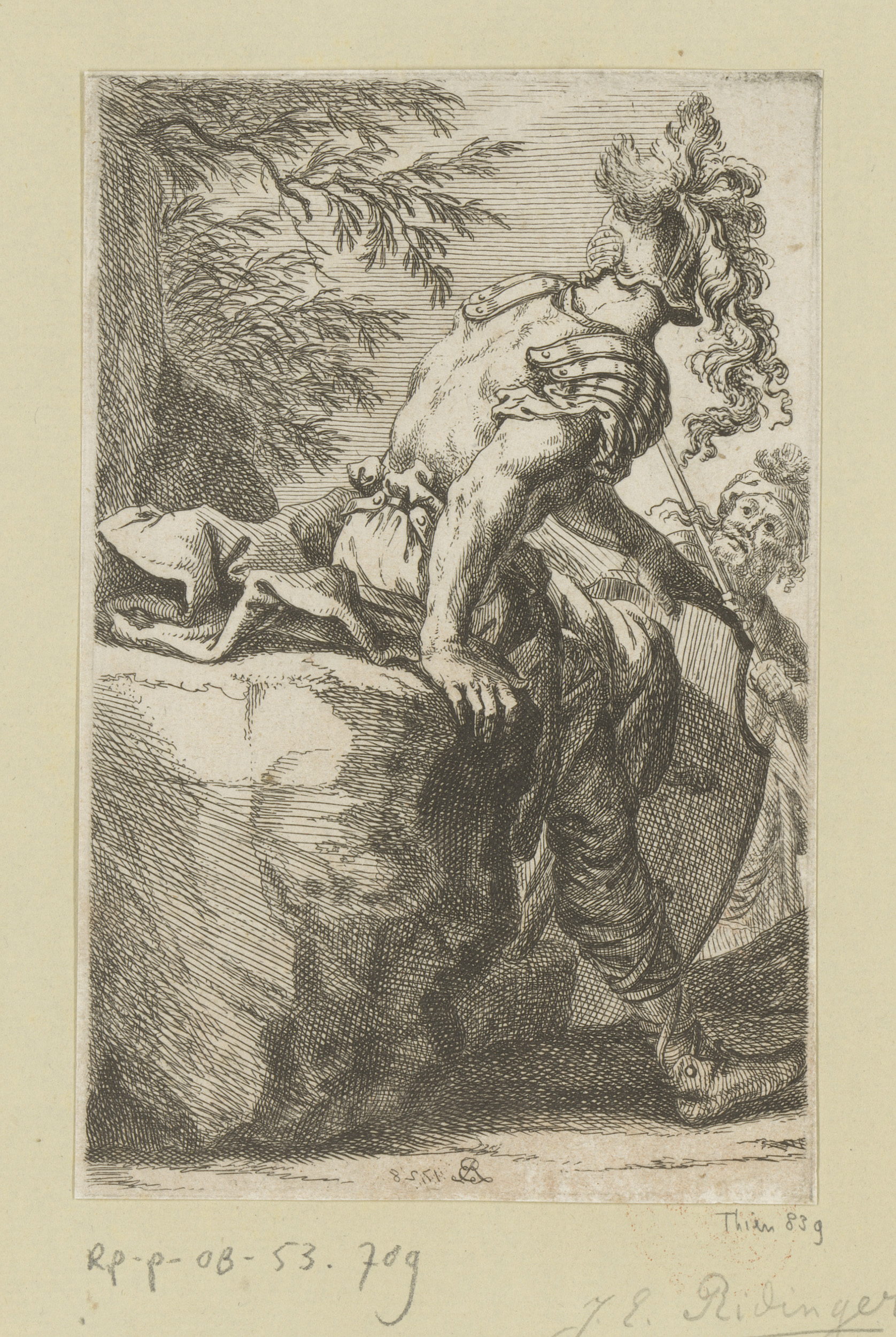 Romeinse soldaat op een rots gezeten op de rug gezien