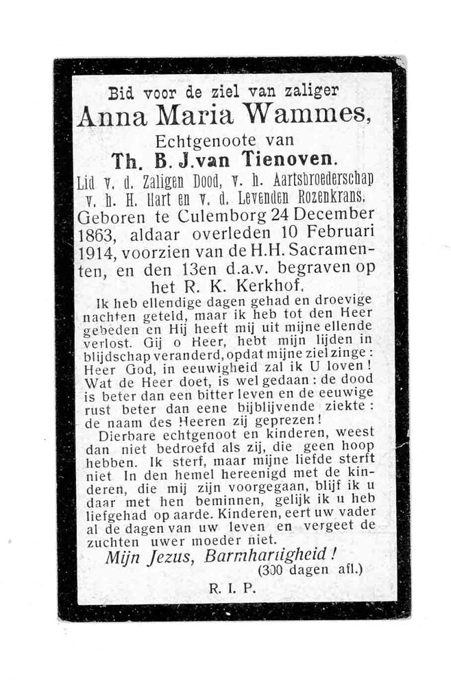 bidprent voor Anna Maria Wammes. Geboren 24-12-1863 ...