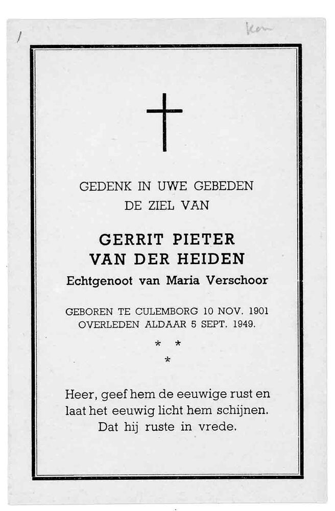 bidprent voor Gerrit Pieter van der Heiden. Geboren ...