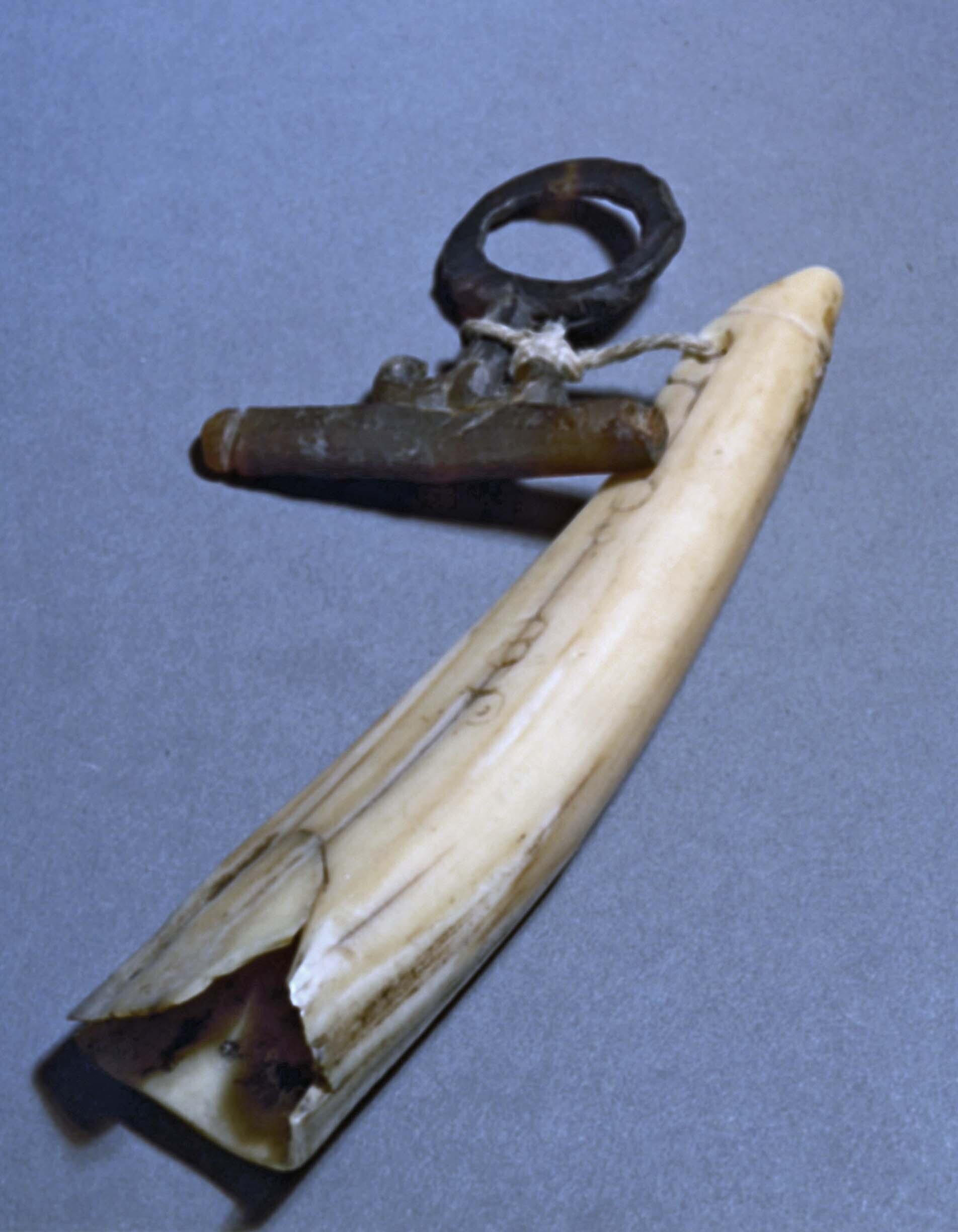 Oorhanger van schildpad en de tand van een zeekoe