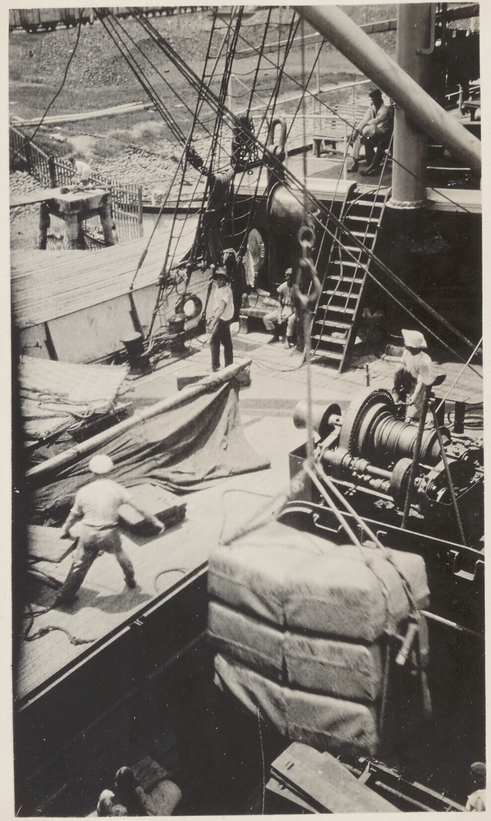 Het laden van tabak in het luik van de S.S. 'Patria'...