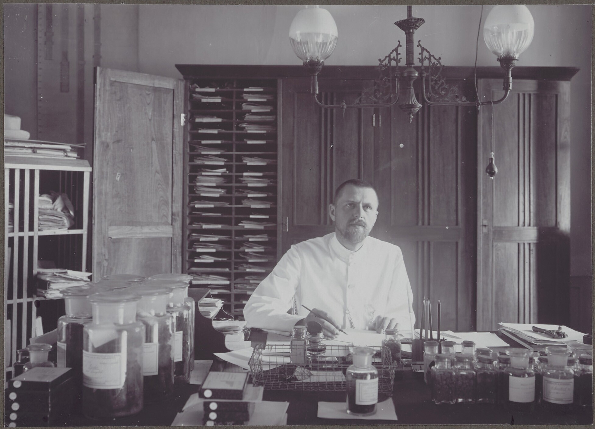 Portret van Dr. Ph. van Harreveld in de werkkamer va...